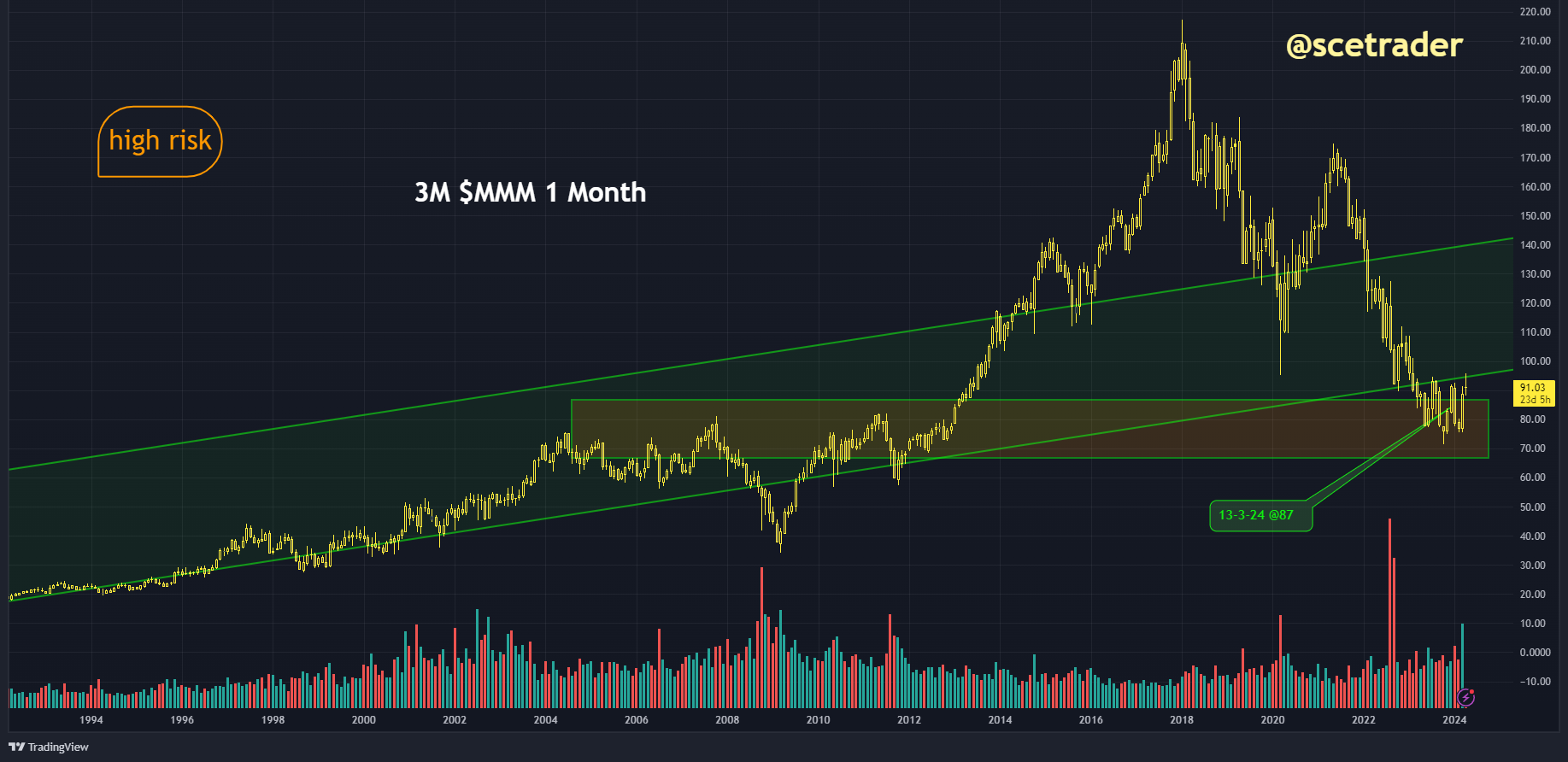 We zijn van mening dat het bedrijf, ondanks lopende claims, een accumulatieperiode doormaakt. Hoewel het momentum iets verbeterd is, zouden we graag een nog sterkere impuls willen zien. Als dat gebeurt, bestaat de kans dat we een grotere positie innemen in het aandeel 3M. Als de marktomstandigheden zich verder blijven verbeteren voor deze sector, zou zelfs een langdurige stijging mogelijk zijn. We kijken dus uit naar meer winst.