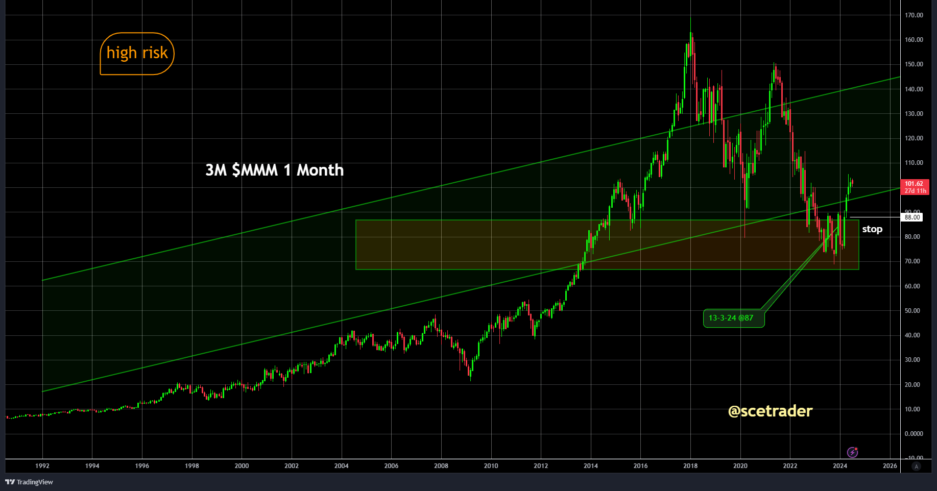 De Amerikaanse beurzen zijn vandaag weer open. We gaan een stop plaatsen op onze positie in 3M $MMM. We zijn eerder ingestapt op 87 dollar vanwege diverse redenen die we toen hebben aangegeven, zoals de oplossing van de claims in de oordoppenaffaire en de verwachting dat het bedrijf zijn zaken weer op orde zou krijgen.