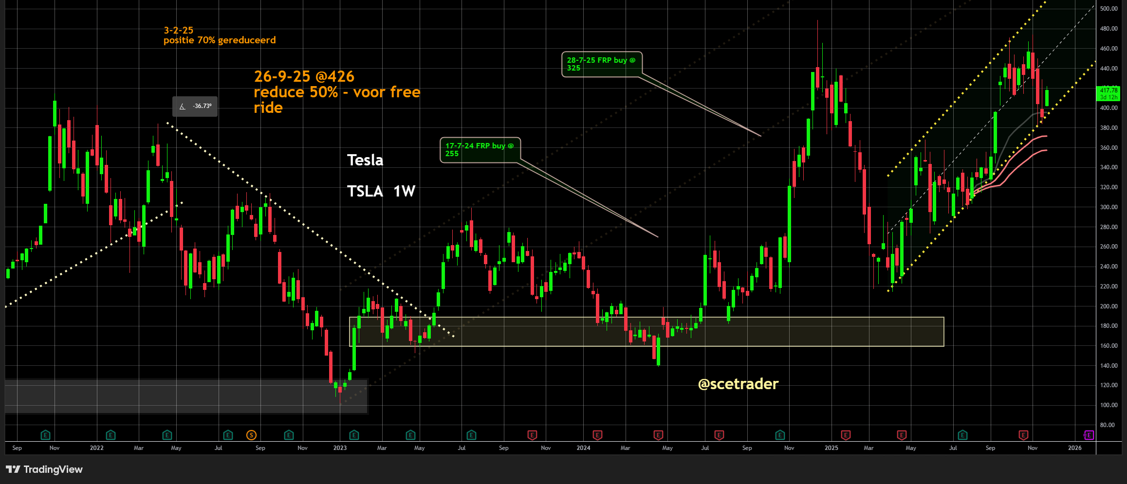 De cijfers van oktober tonen een duidelijke verschuiving: BYD groeit hard in Europa, terwijl Tesla terrein verliest. Dit verandert niets aan onze visie. Tesla blijft strategisch sterk gepositioneerd en de waardering baseren wij op technologie, software en toekomstige initiatieven. Wij blijven positief en blijven zitten op een stijging van het aandeel.