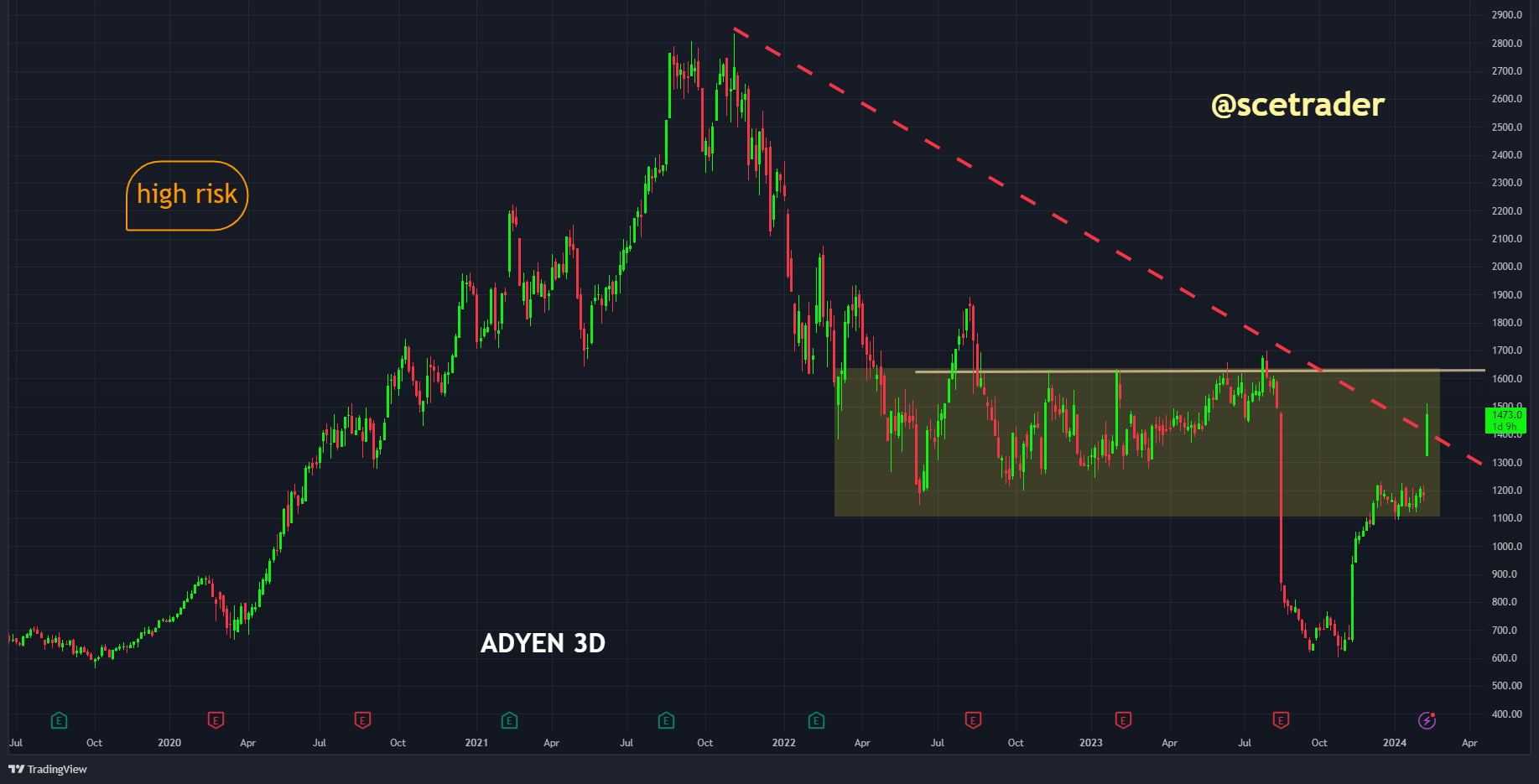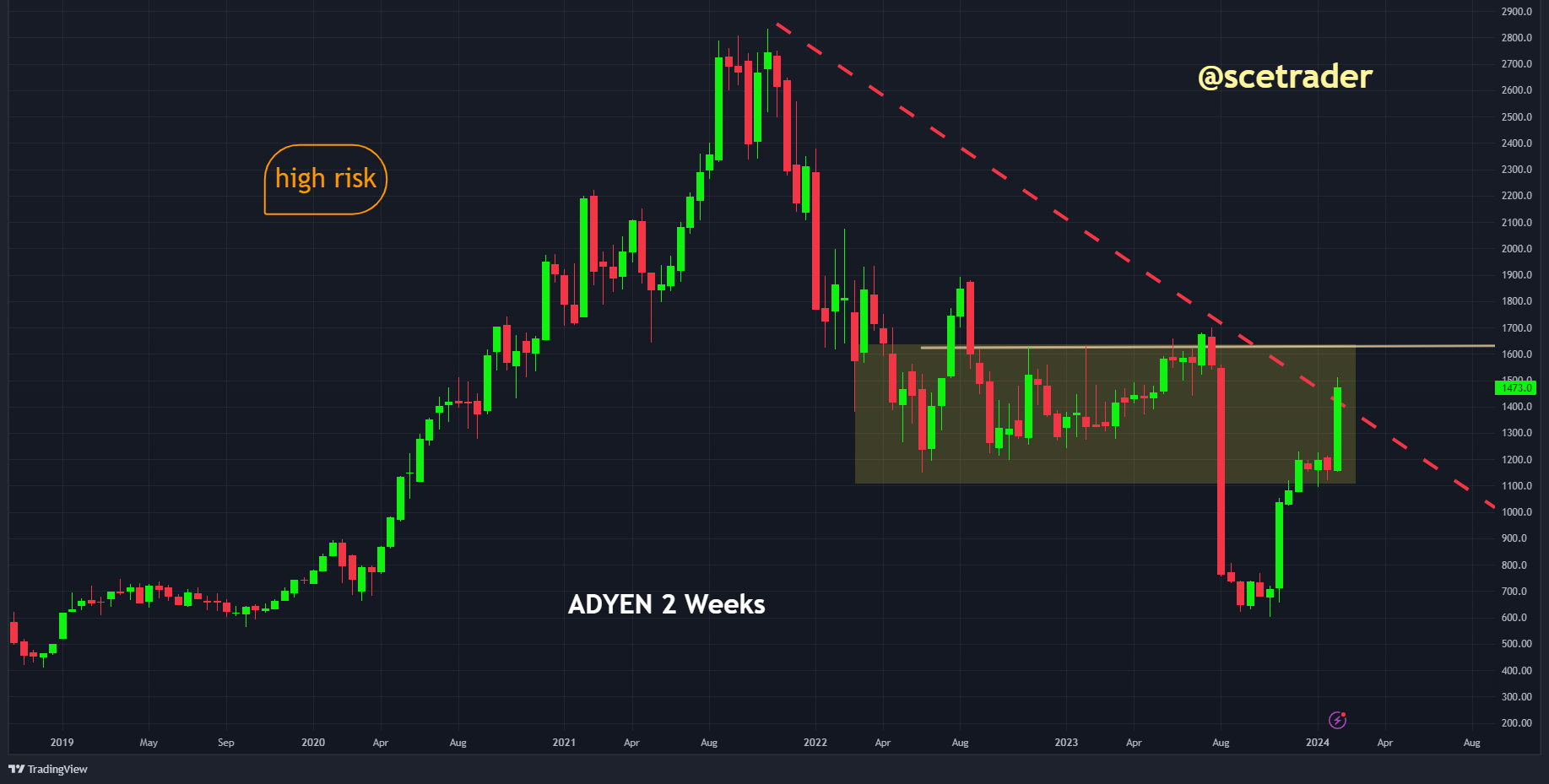 Adyen verwacht dat de groei in 2024 aan de onderkant van de prognose zal liggen. CFO Ethan Tandowsky gaf ook aan voorzichtig te zijn over de winstmarges voor dit jaar. Ook dit is een punt om rekening mee te houden, hoewel het strategisch kan zijn ingegeven om dan later weer opwaarts te verrassen.