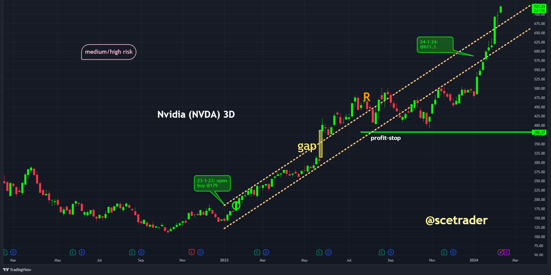 Een strategische blik houdt bijvoorbeeld in dat we vanaf eind 2022 een vroege investeerder waren in NVIDIA, BESI, General Electric en bijvoorbeeld Uber om een paar voorbeelden te noemen [De charts met de instapniveaus staan in de begeleidende podcast].