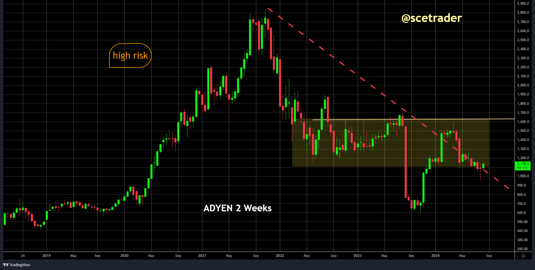 - Risico op overcapaciteit: De snelle groei van Adyen's team en infrastructuur kan leiden tot overcapaciteit als de groei van de volumes achterblijft bij de verwachte toename van de operationele capaciteit.