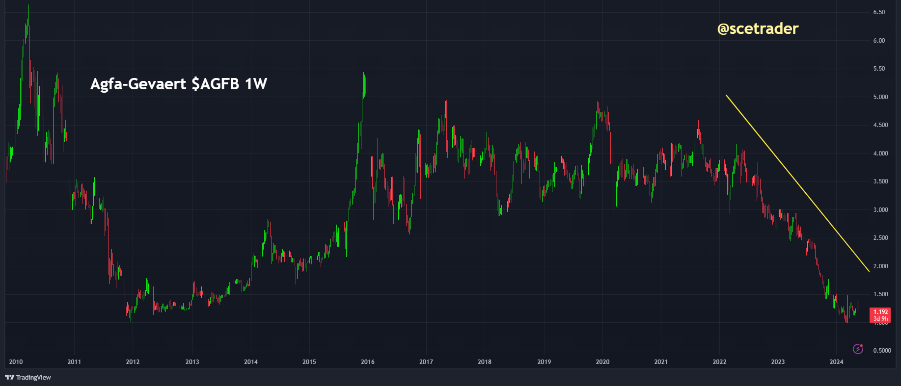Agfa-Gevaert $AGFB heeft een uitdagend eerste kwartaal van 2024 achter de rug, ondanks dat de jaarverwachtingen gehandhaafd blijven. Dit Belgische bedrijf, bekend om zijn activiteiten in de gezondheidszorg-IT, digitale druk en chemie, en radiologie-oplossingen, ondervond verschillende tegenslagen die de financiële resultaten negatief beïnvloedden. Het aandeel staat 14% lager.