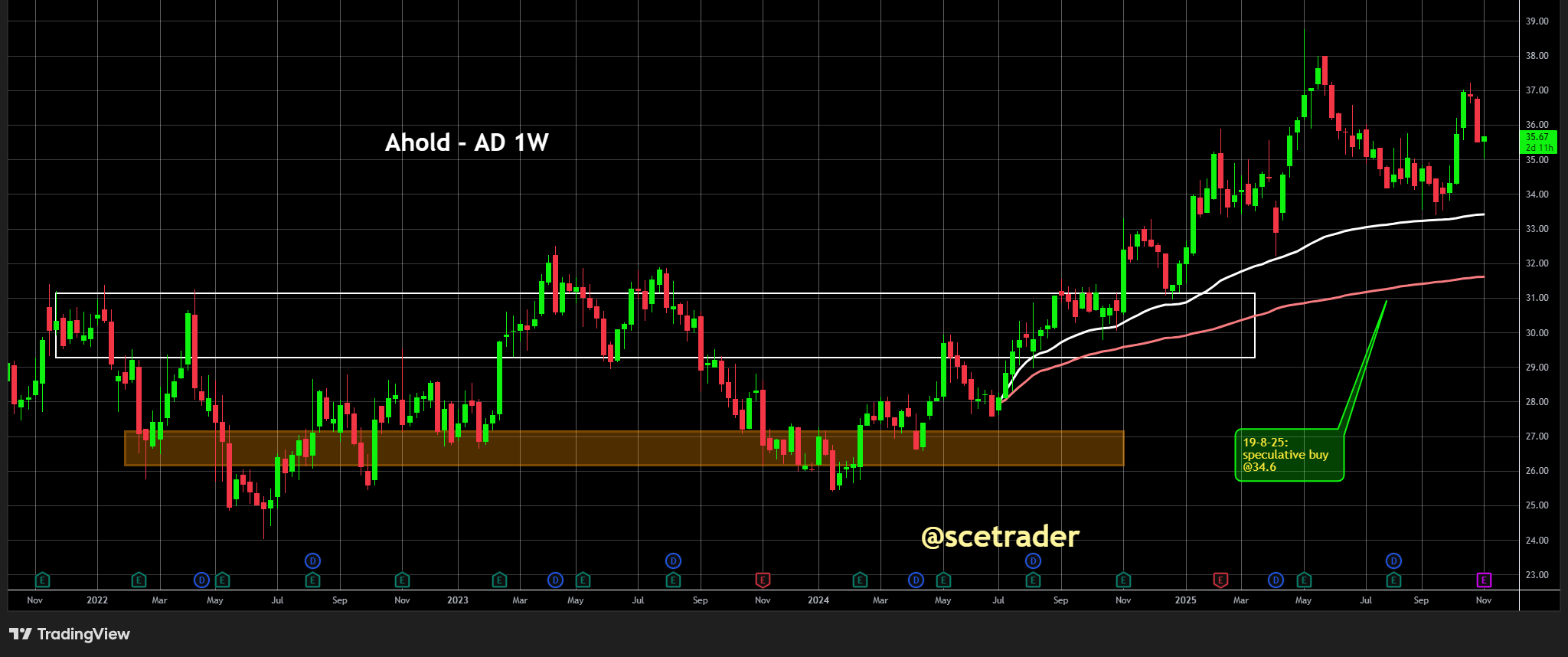 We maintain a trading-buy position on Ahold Delhaize and have become more positive following the strong quarterly performance. The company combines solid top-line growth with disciplined execution, strong free cash flow, and consistent shareholder returns. While the stock trades at the upper end of its historical valuation range, the fundamentals justify our positive stance.
