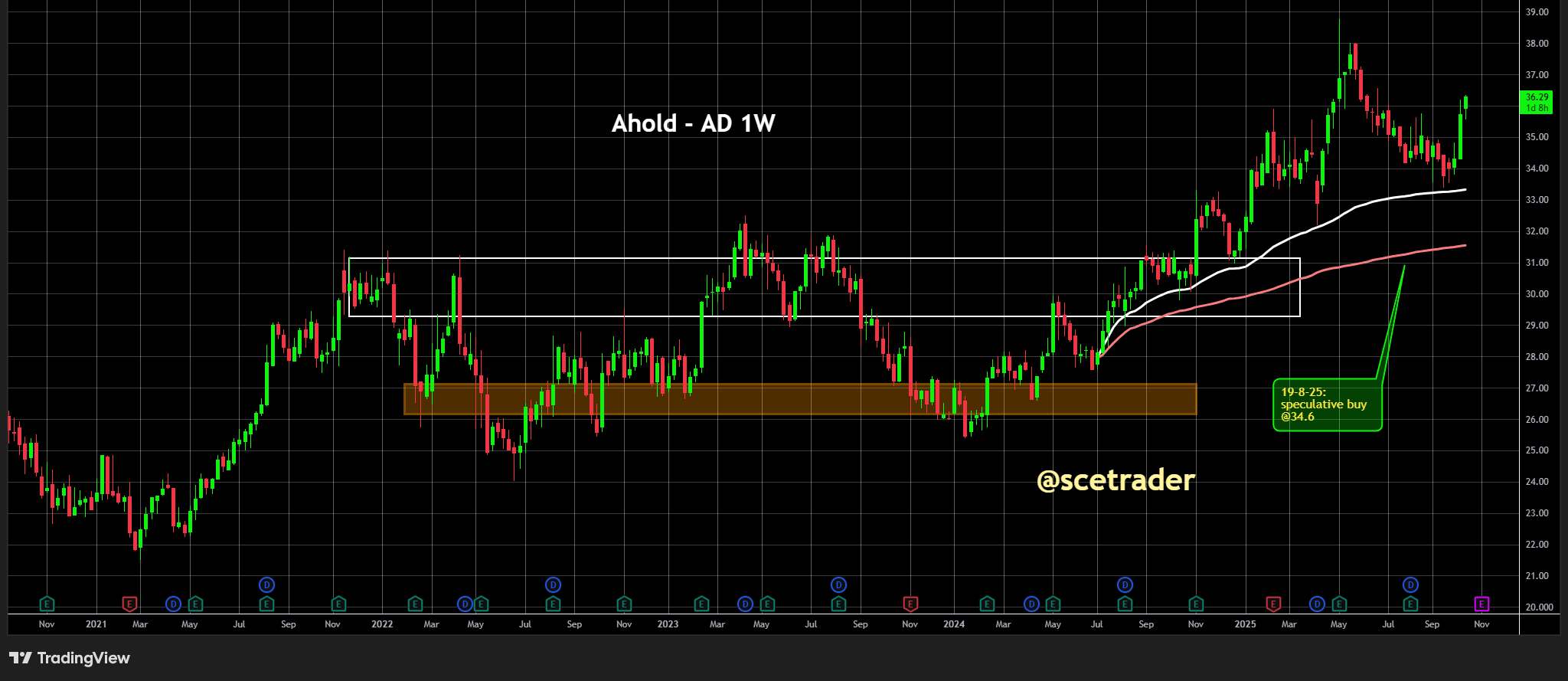 Ahold Delhaize gained ground on Thursday after UBS upgraded the stock from Sell to Neutral and raised its price target from €28 to €36. The Swiss broker believes margin pressure in the U.S. is easing and expects profitability to stabilize heading into 2026.
