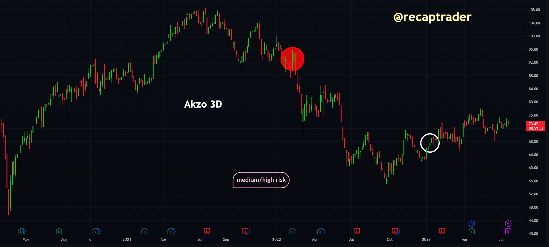 Akzo (AKZA) rapporteerde in het tweede kwartaal van 2023 een lagere omzet maar een hoger resultaat. De outlook voor het jaar is licht verhoogd. Voor boekjaar 2023 rekent AkzoNobel op een aangepaste EBITDA tussen 1,40 en 1,55 miljard euro, tegenover eerdere verwachtingen van 1,2 tot 1,5 miljard euro.