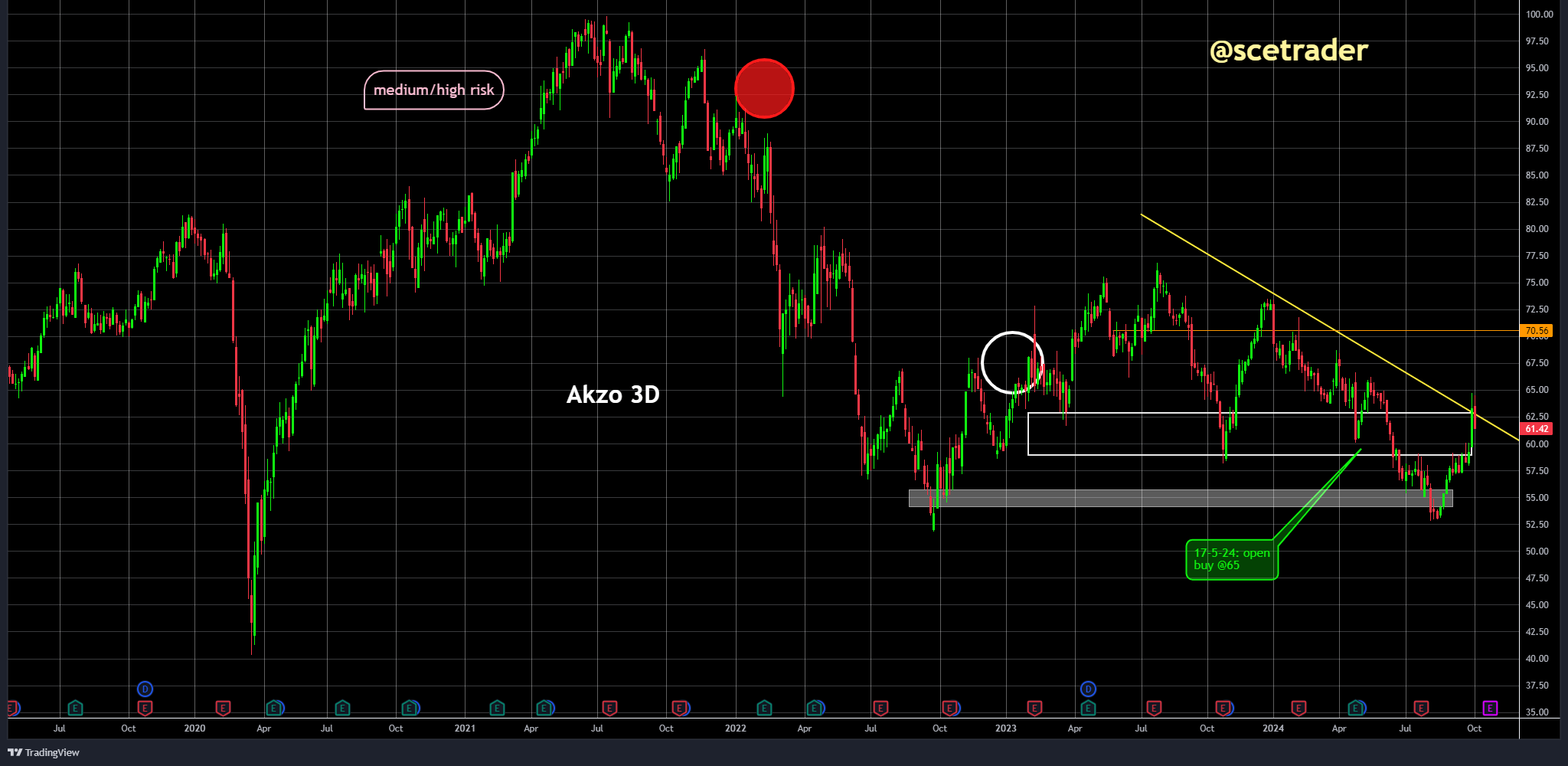 AkzoNobel [Akzo] $AKZA heeft aangekondigd dat het zijn portfolio gaat herzien om meer kapitaal vrij te maken voor de belangrijkste coatingactiviteiten. Deze stap is positief omdat het bedrijf zich beter kan richten op zijn kernactiviteiten en zo zijn winstgevendheid kan vergroten. Wij zitten reeds op een stijging van het aandeel en overwegen zelfs om bij te kopen als de koers wegdipt.