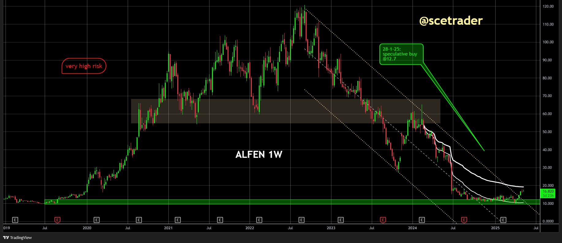 Wij zijn er vrijwel zeker van dat we morgen gaan uitstappen. Gelukkig staan we nog op winst, nadat we het aandeel op 28 januari speculatief hebben gekocht op 12,7 euro. Zelfs bij een daling van ruim 10 procent die we niet uitsluiten.