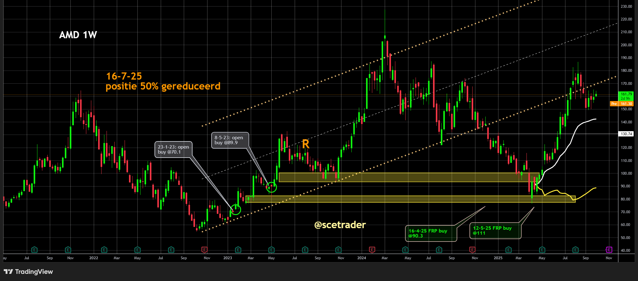 Wij blijven zitten op een stijging van AMD en zien de samenwerking met IBM en Zyphra als een belangrijk bewijs dat AMD de komende jaren marktaandeel kan winnen. Het aandeel zal niet zonder correcties omhoog gaan, maar wij verwachten dat AMD richting 600 dollar kan bewegen.