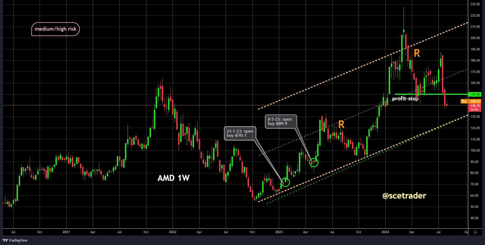 We zijn eerder met een aanzienlijke winst uitgestopt en sluiten dus op de korte termijn een verdere correctie niet uit. Echter, eigenlijk is AMD één van de goedkopere chipaandelen geworden, maar de dip past in het totaalbeeld.