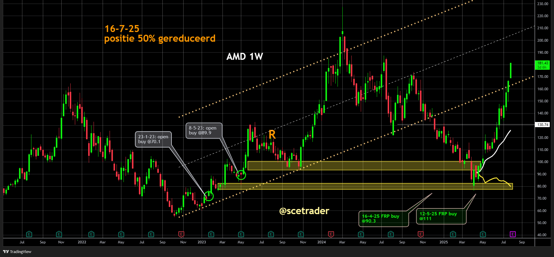 Advanced Micro Devices $AMD blijft in juli 2025 sterk presteren. De koers noteert inmiddels rond de $180. Begin juli namen we winst op de helft van onze positie, na een krachtige rally.