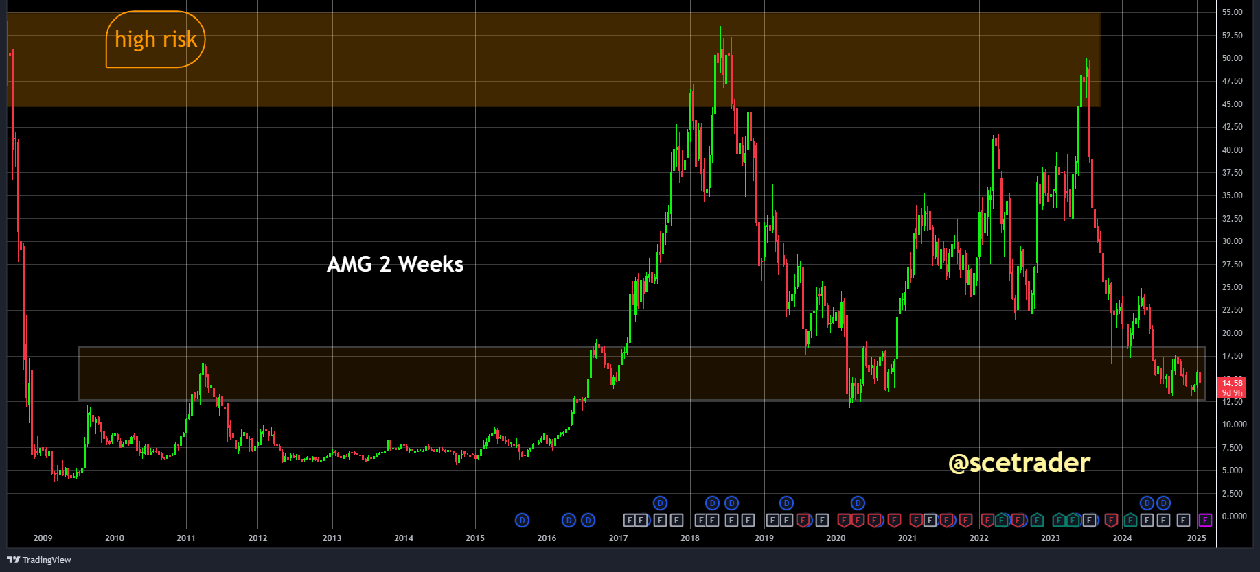 Uit een blik op de grafieken blijkt dat AMG momenteel rond een mogelijk steunpunt handelt. Hoewel dit "hoop" heeft, blijven er fundamentele onzekerheden. Dit heeft vooral te maken met de overproductie in grondstoffen zoals lithium en andere metalen waarin AMG actief is. Hoewel er in deze sector enige sanering plaatsvindt, blijft de druk groot.