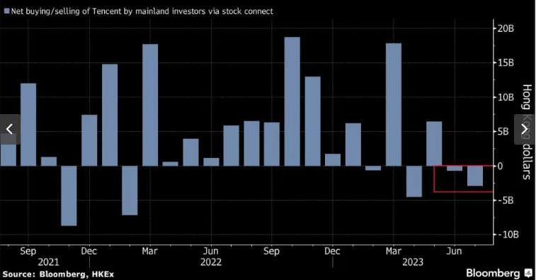 De afgelopen twee maanden hebben binnenlandse investeerders Tencent-aandelen verkocht, waarvan alleen al in juli voor 2.9 miljard Hong Kong dollar ($375 miljoen). De zorgen over de vooruitzichten van het bedrijf en de verkoop door de grootste aandeelhouder Prosus beïnvloeden het vertrouwen van de investeerders.