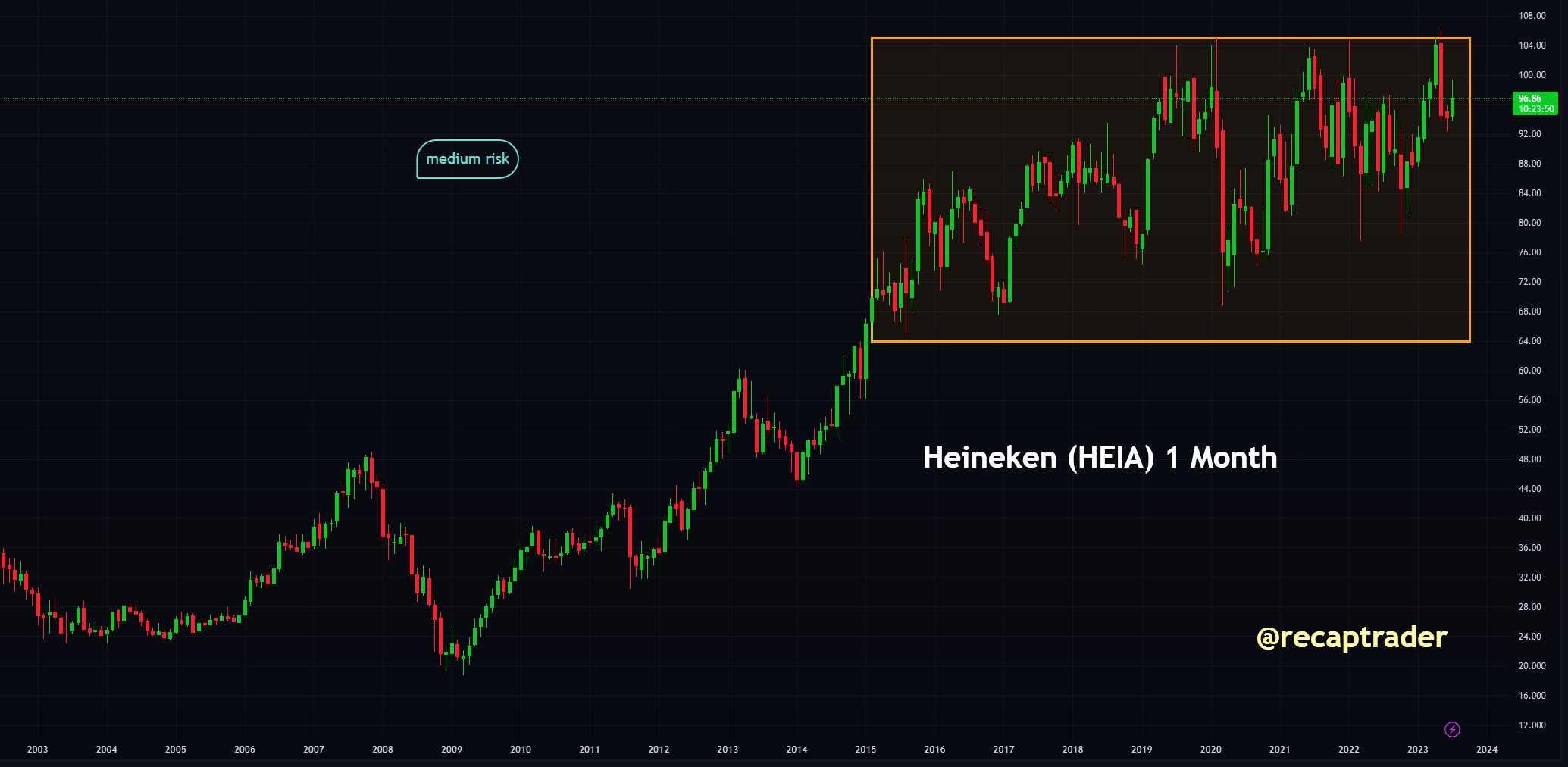 Heineken heeft zijn outlook verlaagd. Dit is geen verrassing voor ons, zie eerdere berichten. We hebben geen positie in Heineken, dat geen toegevoegde waarde biedt op dit moment. Het aandeel zit al jaren vast in een bepaalde range en is al lang niet meer de hoogvlieger zoals in de jaren 90.