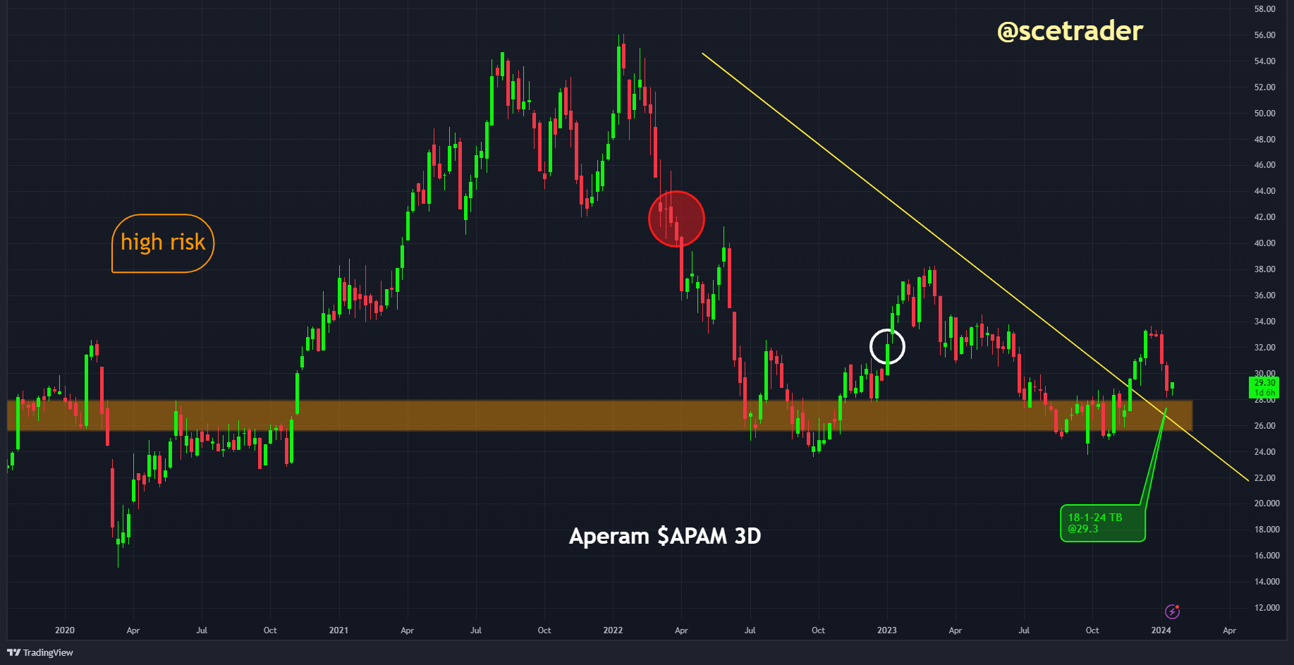 Het aandeel Aperam $APM staat na een aantal broker-downgrades vandaag toch hoger. Deze downgrades zijn waarschijnlijk weer veroorzaakt doordat het bedrijf richting heeft gegeven aan zakenbanken. Dat het aandeel hoger staat, geeft aan dat de kans op negatieve verrassingen (althans voor de markt) kleiner is geworden. Dit leidt ertoe dat wij overgaan tot actie in het aandeel Aperam.
