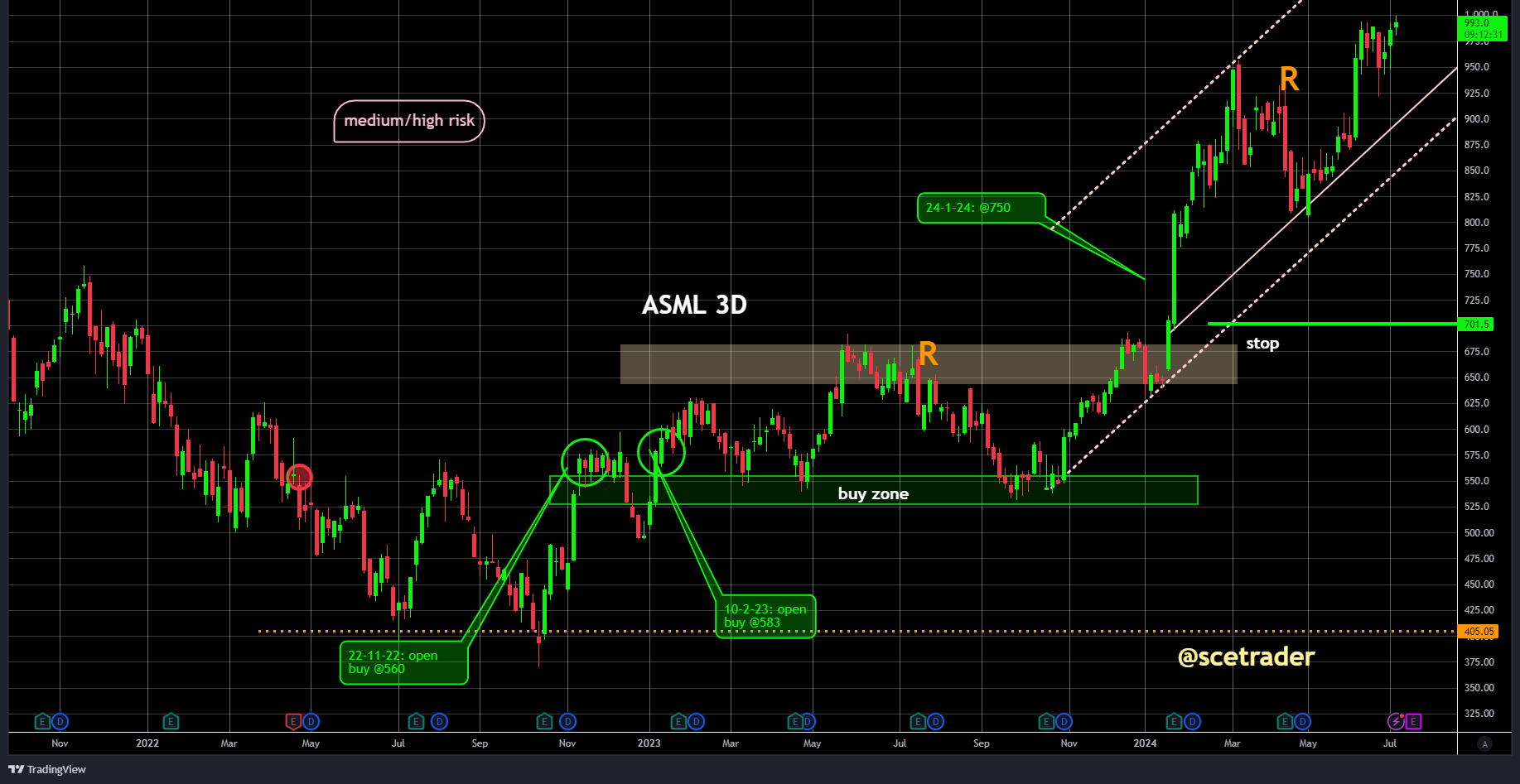 Het aandeel van ASML $ASML staat momenteel boven de duizend euro, waarmee het een nieuwe mijlpaal in de koersvorming heeft bereikt. Deze stijging komt ons goed uit, aangezien we verwachten dat de koers nog verder zal stijgen.