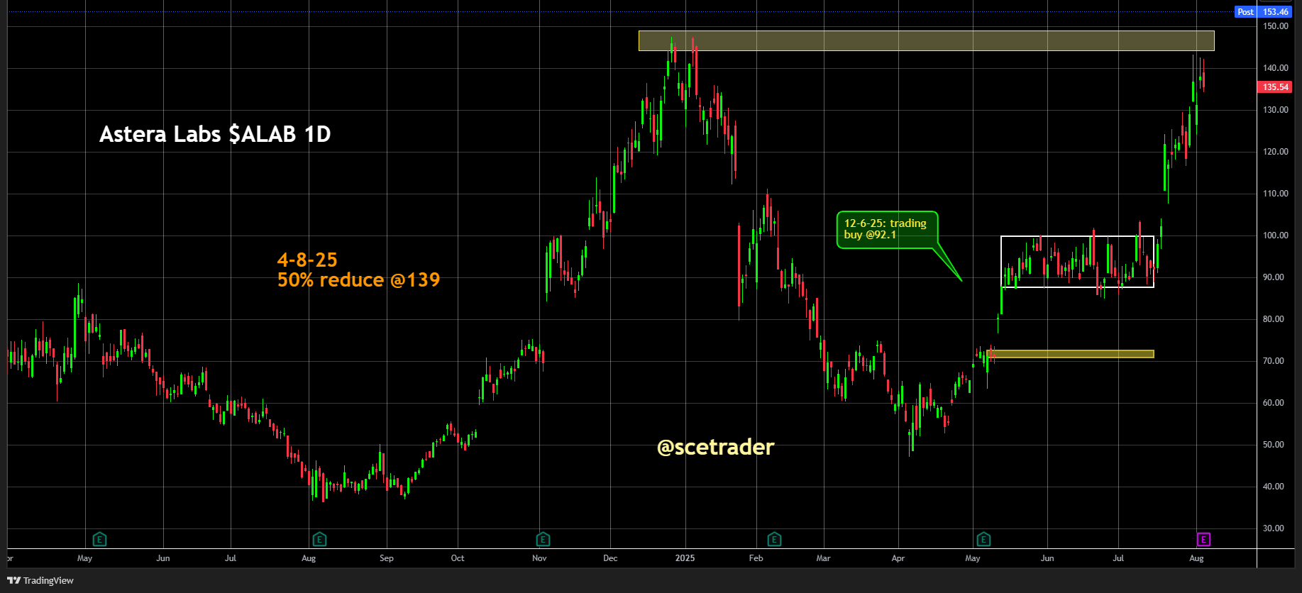 Wij zitten op een stijging vanaf 92,1 dollar van het aandeel Astera Labs en hebben op 4 augustus al een deel van onze positie verkocht om een free ride te creëren (zie ook de database). De resterende positie houden we voorlopig aan, mede door de overtuigende cijfers en de verhoogde outlook.