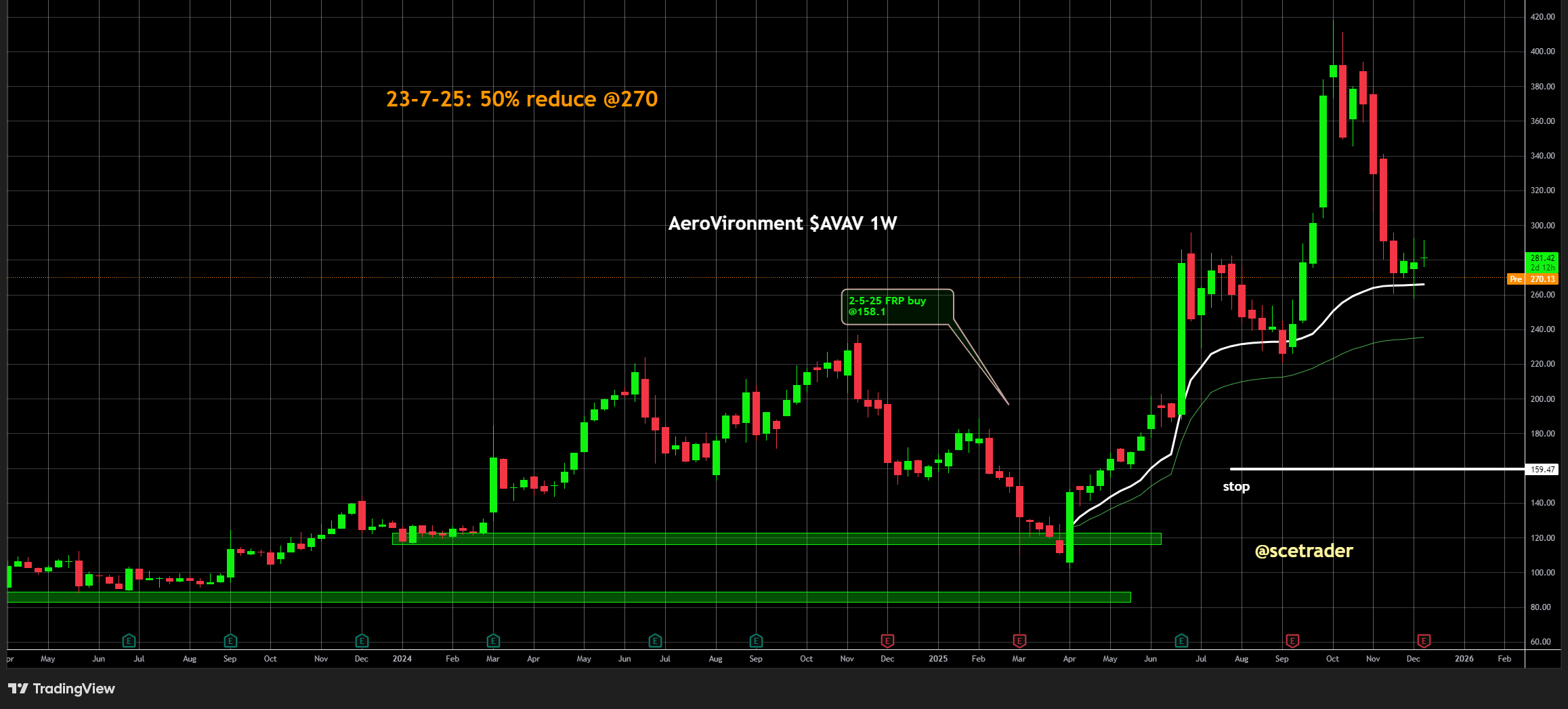 We remain long AVAV. We reduced our position earlier at higher levels, and while we are not adding now, the stock stays on our list of candidates for future expansion if it retraces to more attractive entry points. The long-term trajectory remains intact and is reinforced by the strength of the order cycle.