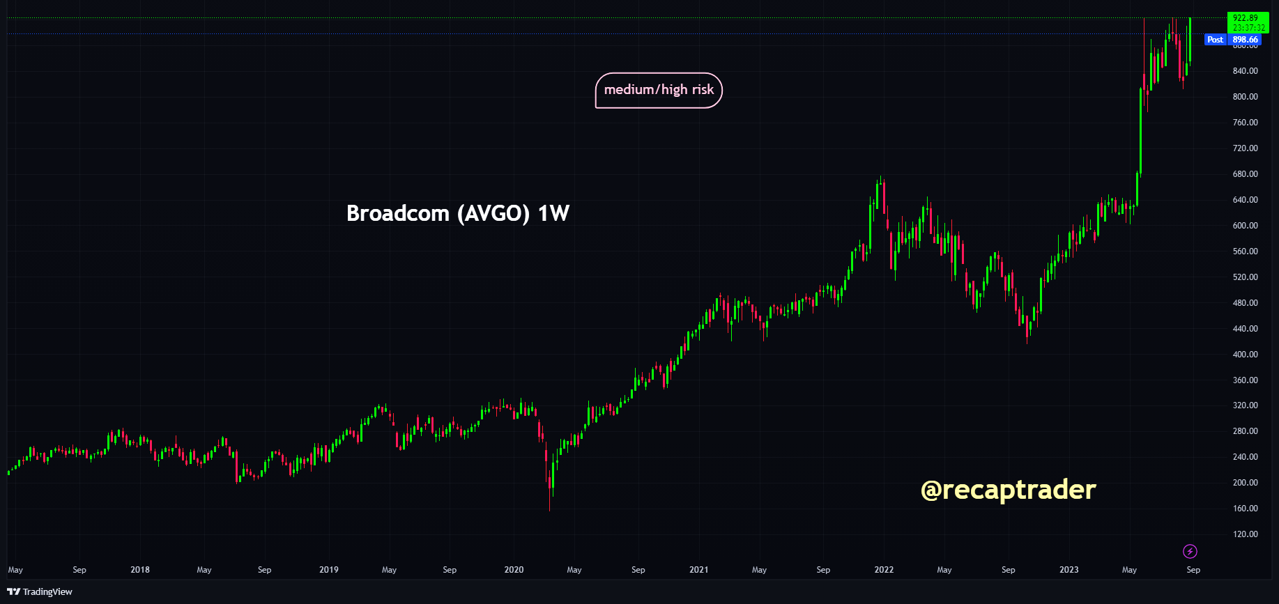 Broadcom $AVGO ging nabeurs iets lager na de cijfers. Vooralsnog doet het aandeel het heel goed, maar wij zien vooral zo nu en dan trading kansen en zijn voor de rest toeschouwer.