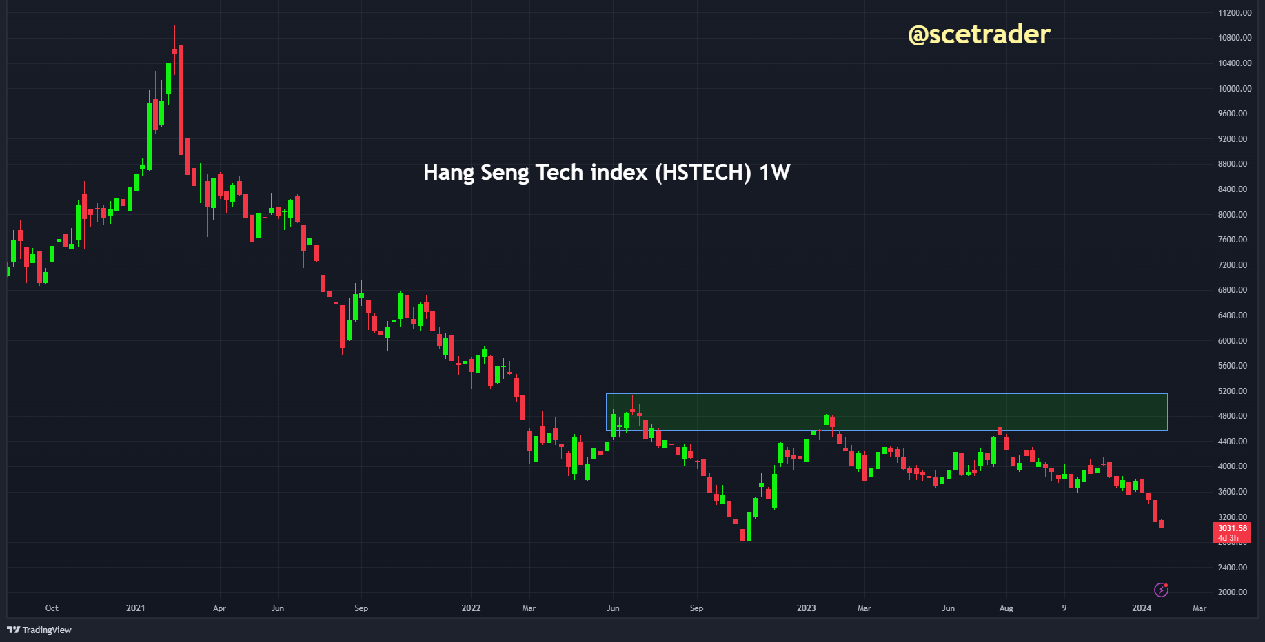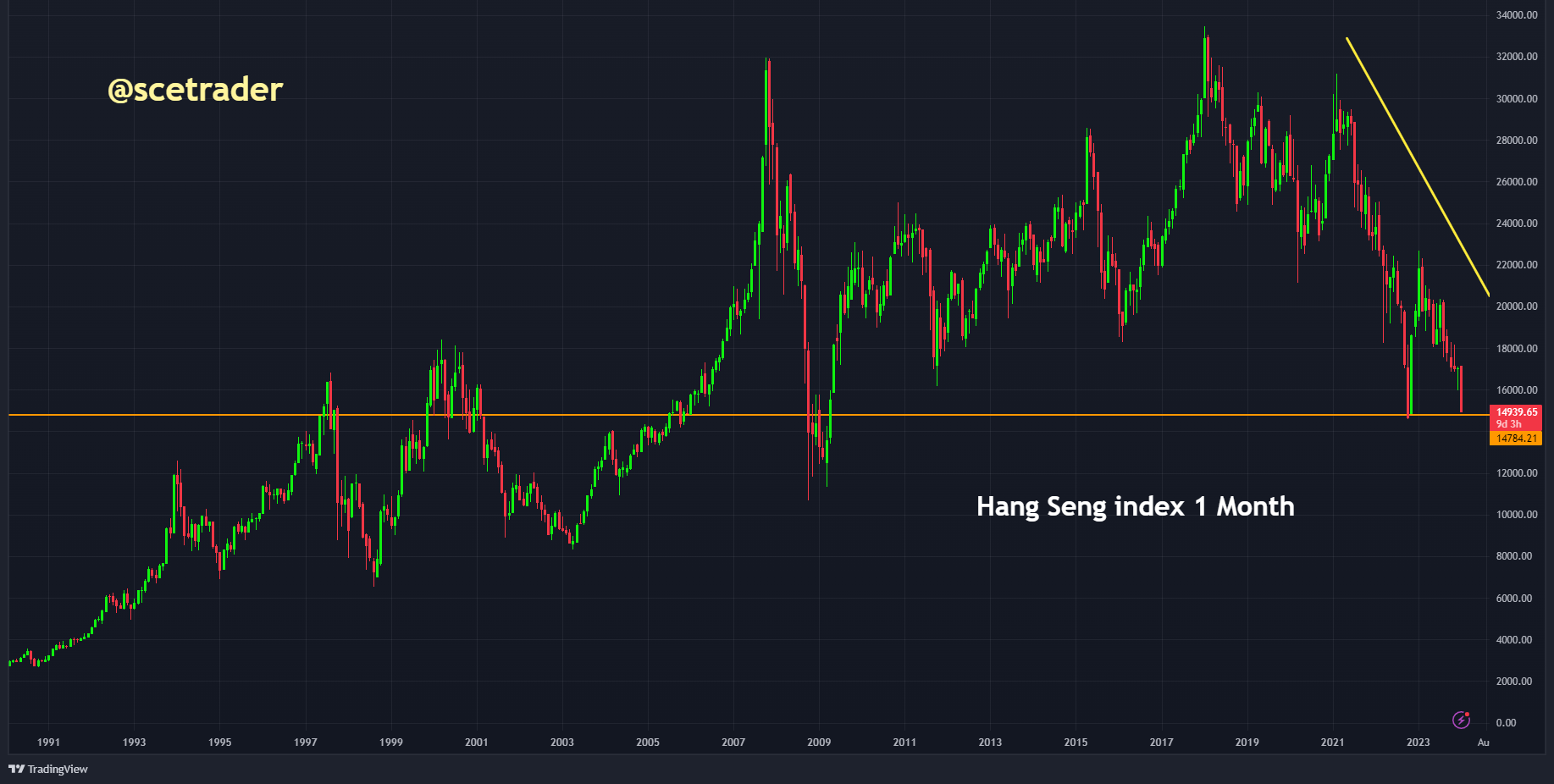 Aandelen op de beurs van Hong Kong gemeten aan de Hang Seng $HSI kenden maandag een daling van 2%, waarmee ze een dieptepunt van 19 jaar bereikten. De neergang van de indices vandaag volgt op het besluit van China om de loan prime rates onveranderd te laten. Hoewel dit in lijn was met de verwachtingen, had de markt gehoopt op actie. Er blijven grote zorgen over de economie.