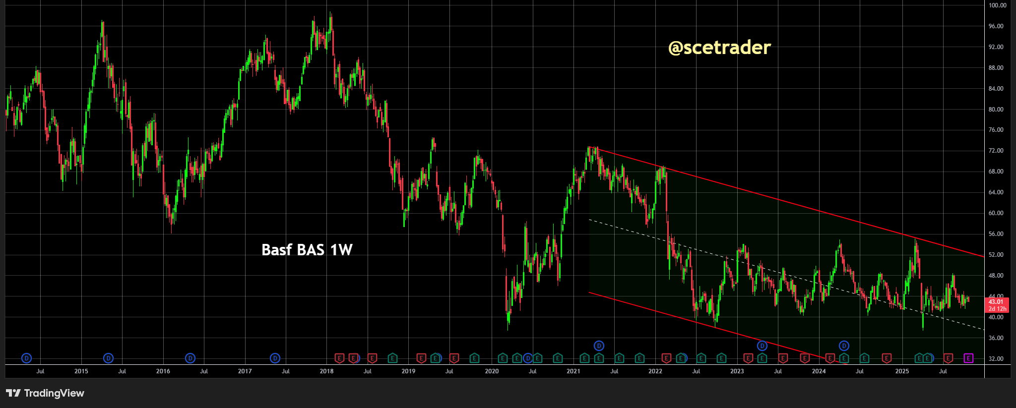 BASF: aandelen inkoop €1,5 miljard start in november - Lost niks op- Chart zwak