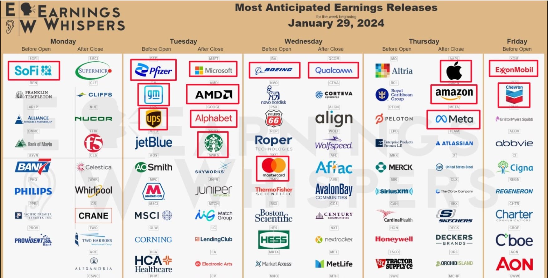 In de loop van de week is het op Wall Street onder andere de beurt aan Pfizer, Boeing, Novo Nordisk, Merck, Honeywell, ExxonMobil en Chevron, om er een paar te noemen.