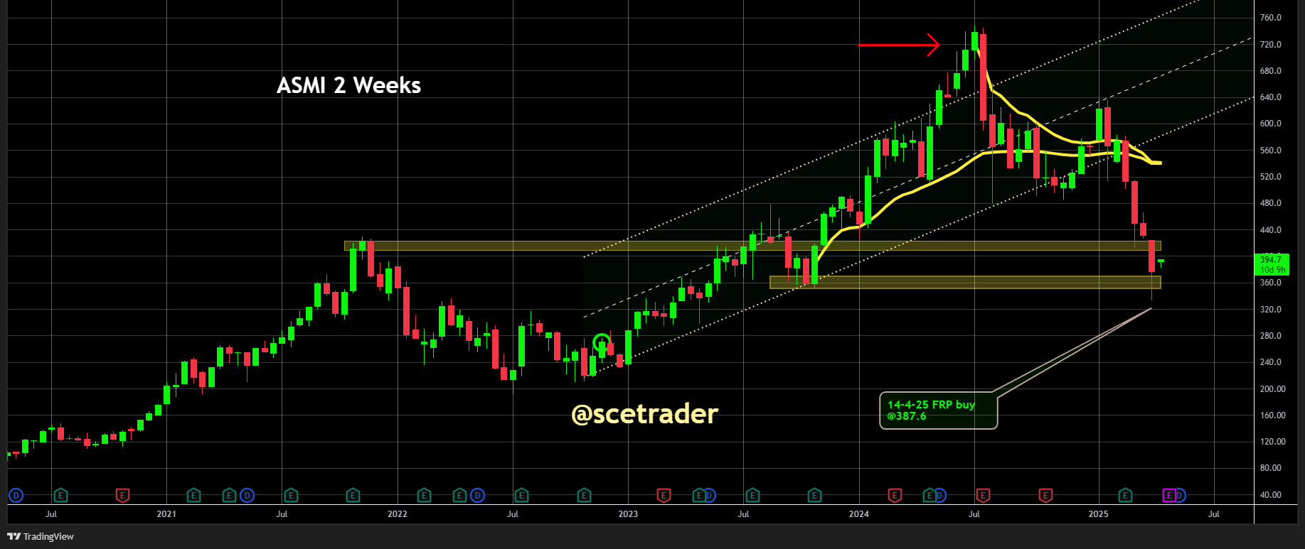 Ook zijn we gisteren opnieuw ingestapt in ASMI (zie de database), dat vandaag 2,5% hoger noteert. Wij zien de positie van ASMI weer aan kracht winnen. Hoewel we voorzichtig blijven vanwege de bekende 30-100%-regel, overwegen we ook hier een aanvullende aankoop.