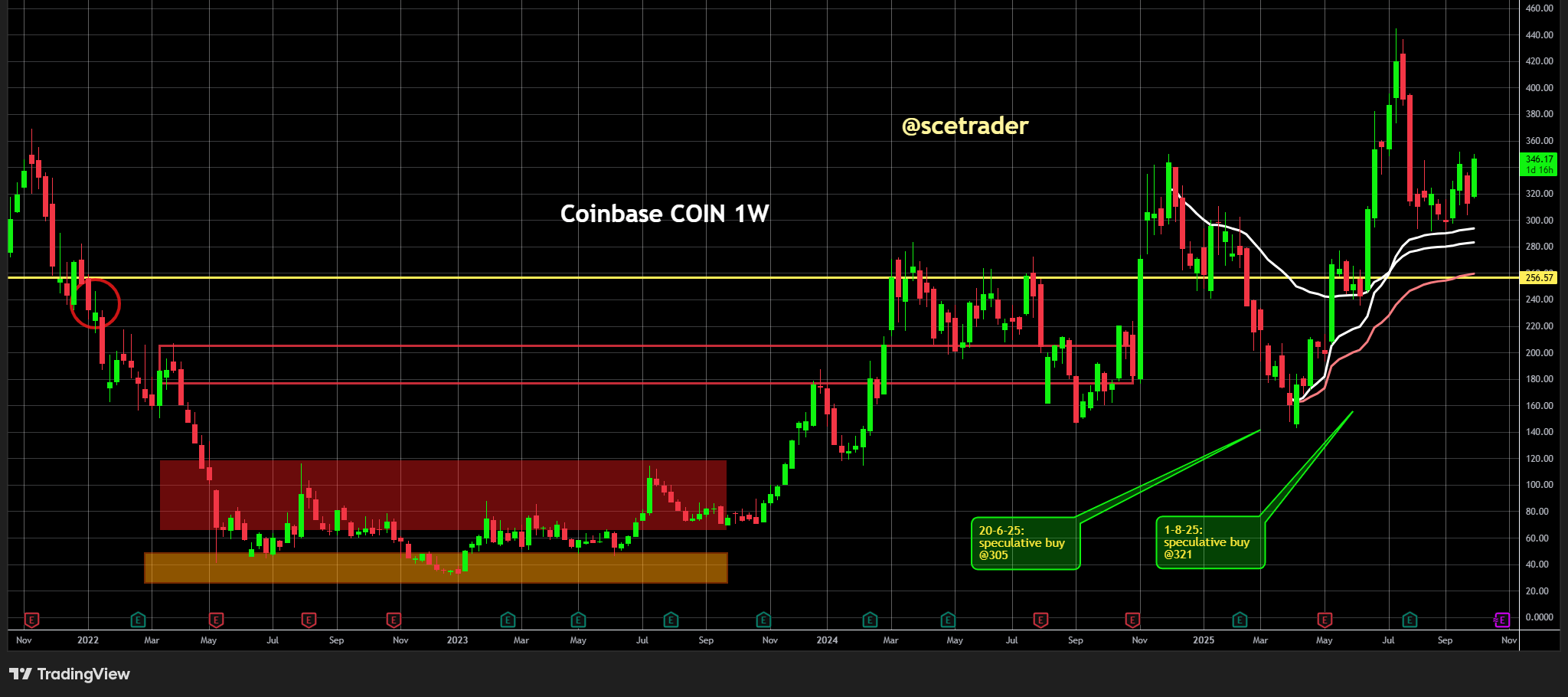 - Coinbase is stabilizing above VWAP levels and is strategically repositioning within digital assets.