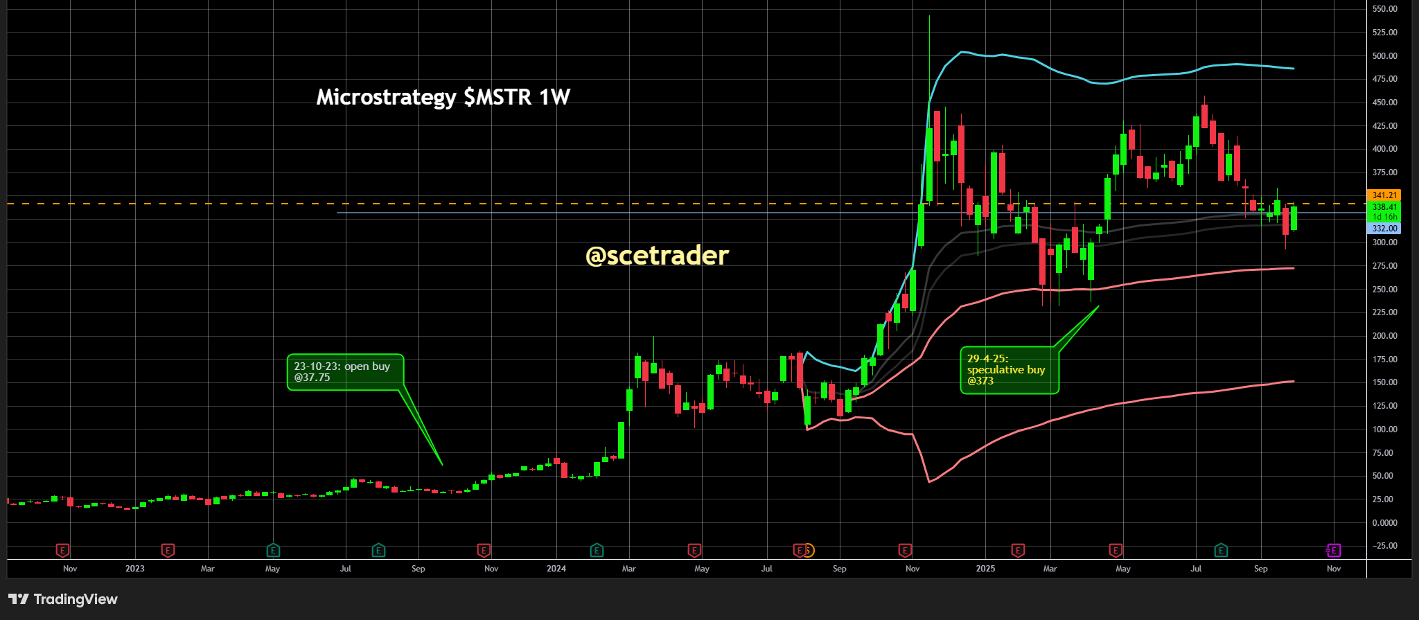 Een tweede steun ligt bij de onderste roze VWAP. Het sterke herstel van de afgelopen dagen bevestigt dat Microstrategy in lijn met Bitcoin beweegt. Als Bitcoin zijn historische toppen doorbreekt, kan dit aandeel niet alleen profiteren via de eigen Bitcoin-posities, maar ook via het verbeterde beleggerssentiment.
