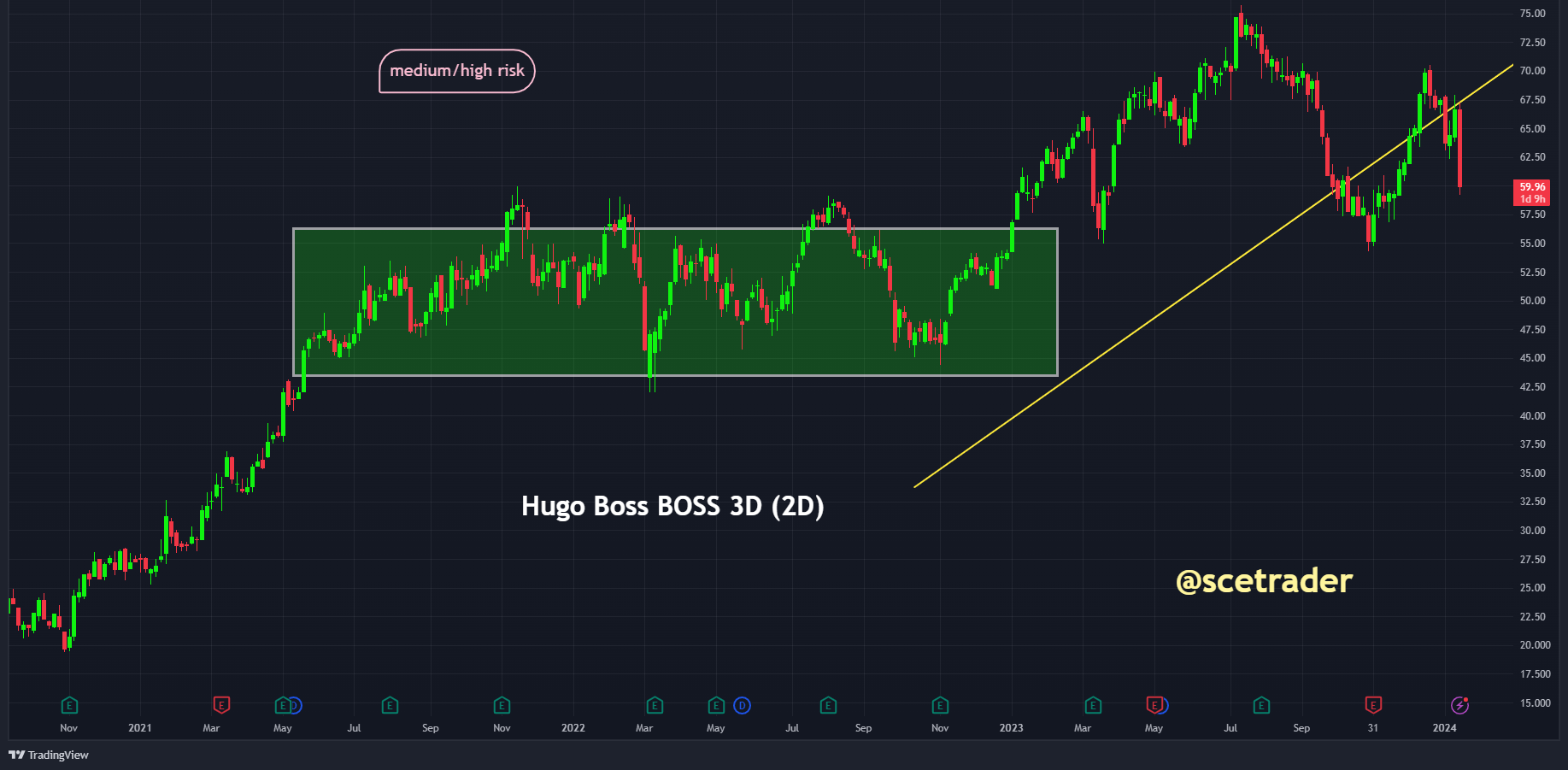 We zouden momenteel niks met het aandeel doen. De markt gaat ervan uit dat er een groeivertraging komt. Hugo Boss zal zijn definitieve resultaten voor 2023 en een vooruitblik voor 2024 op 7 maart publiceren. Tot die tijd is de kans aanzienlijk dat er in ieder geval geen herstel zal optreden.