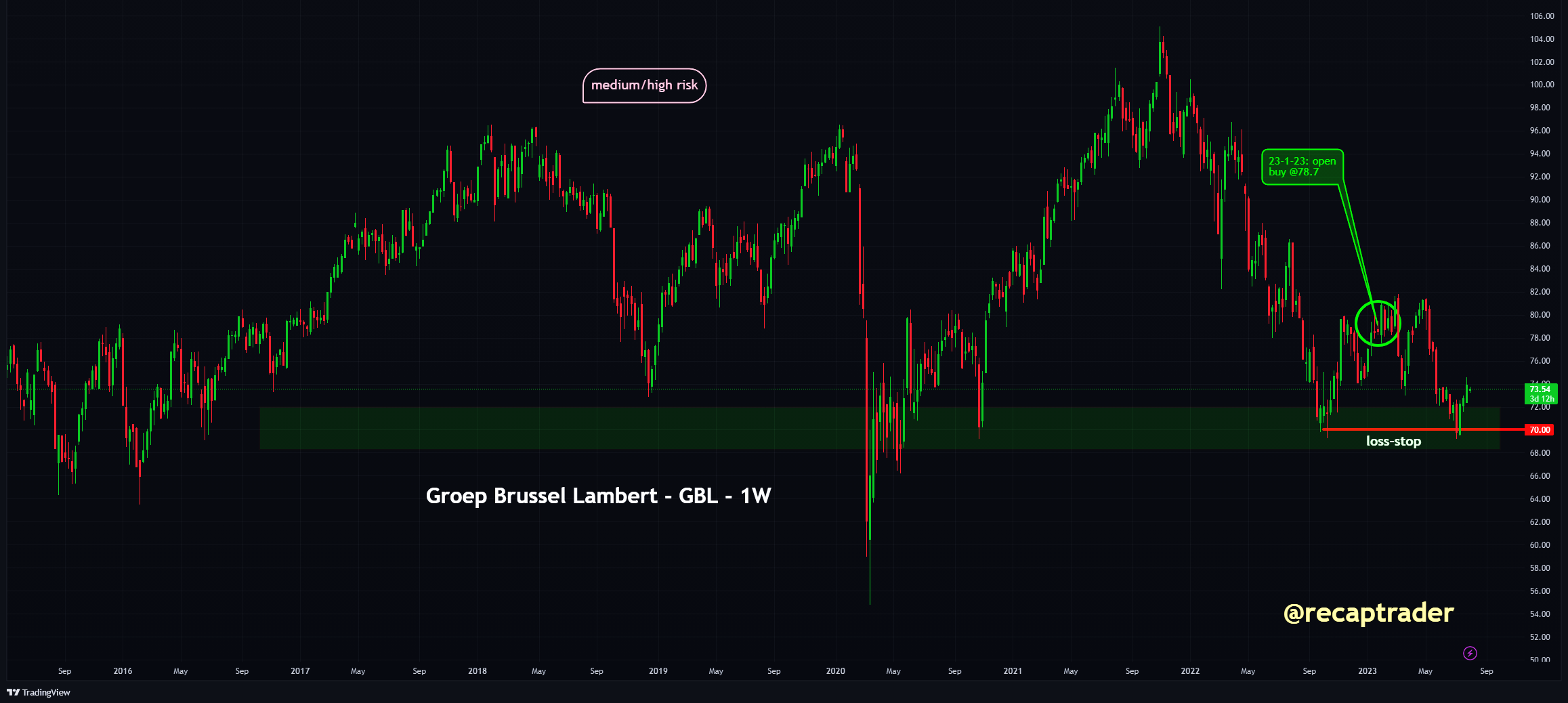 De koers van het aandeel is gedaald sinds we naar up zijn gegaan. Dat verandert echter niets aan het opwaartse potentieel van GBL. We hopen dat de cijfers de koers zullen doen stijgen, maar we zijn niet zeker of we op korte termijn echt beloond zullen worden voor onze aankoop.