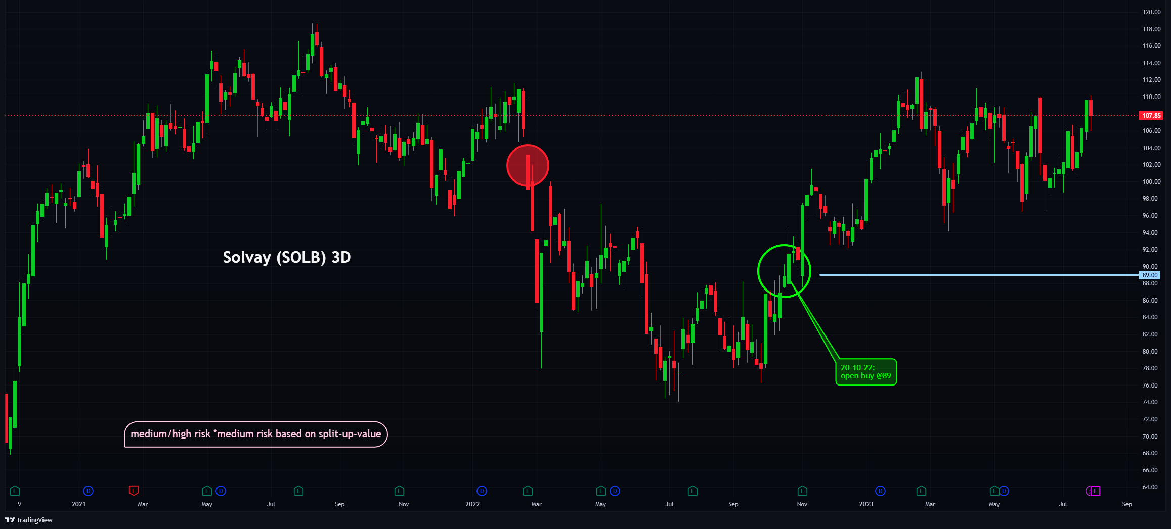 Terwijl we op 89 euro zijn gaan kopen hebben we voor de zeer korte termijn niet al te hoge verwachtingen gezien de prijsactie van het aandeel. Dat neemt echter niet weg dat we toch op een stijging blijven anticiperen.