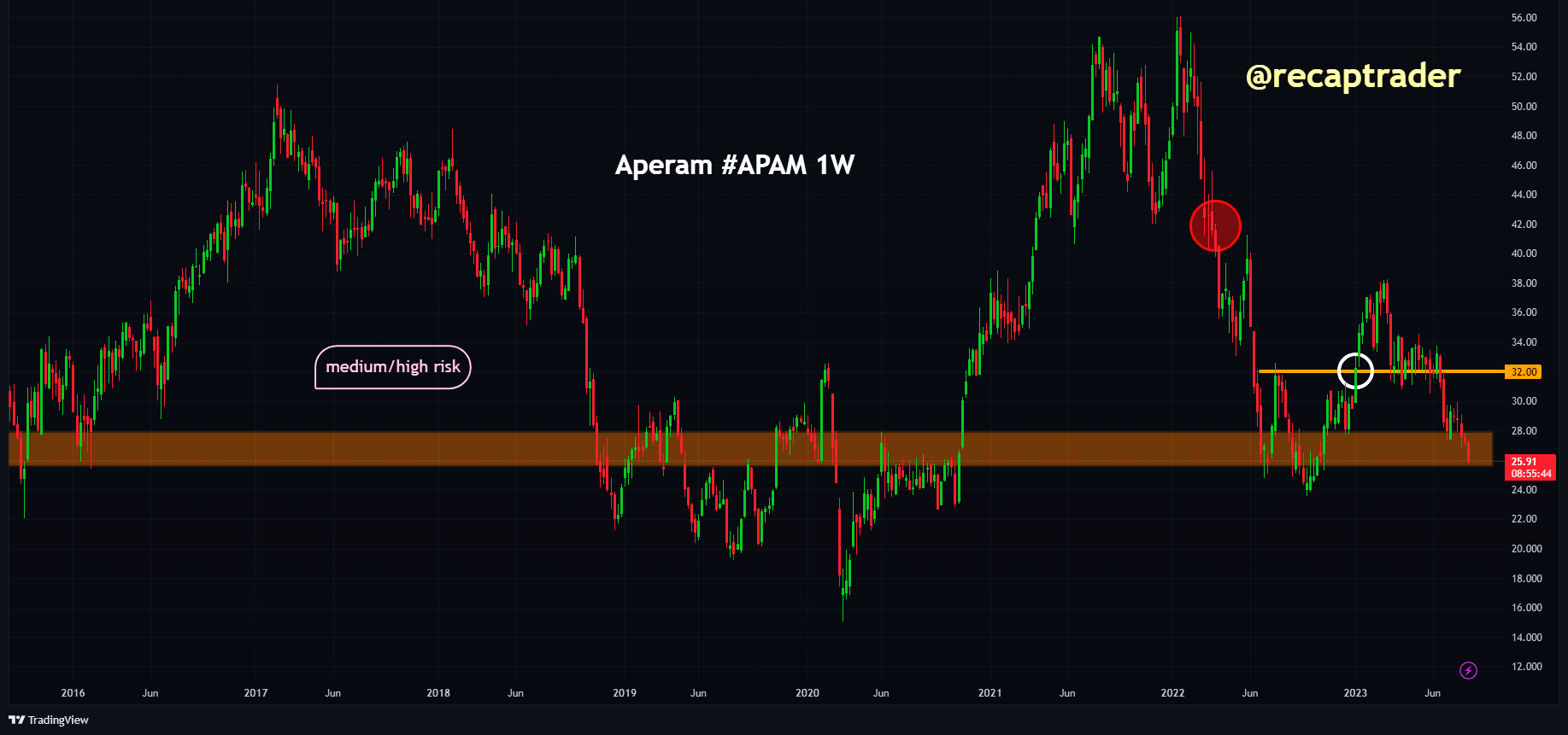 Het aandeel Aperam $APAM blijft onder druk liggen. Gezien de onzekerheden vanuit China zou een nieuwe tempering van verwachtingen wel eens reëel kunnen zijn.