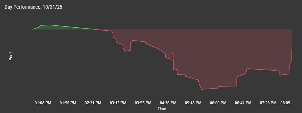 Waar het vrijdag in feite op neerkwam, is dat ik waarschijnlijk te eigenwijs was en een aantal duidelijke signalen heb genegeerd. Daardoor kwam ik scheef in de markt te zitten. Hoewel ik later nog flink ben teruggekomen en zelfs meerdere keren in de plus heb gestaan ongerealiseerd, lukte het uiteindelijk niet om de dag positief af te sluiten.