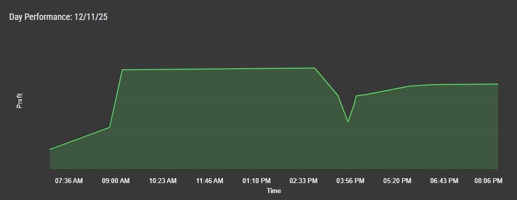 In de ochtend pakte ik de zogenoemde Oracle-dip door vroeg te kopen, wat goed uitpakte. In de middag liep het minder vlot omdat de stops te krap waren geplaatst, waardoor een deel van de winst telkens wegliep. Desondanks was het een degelijke handelsdag.