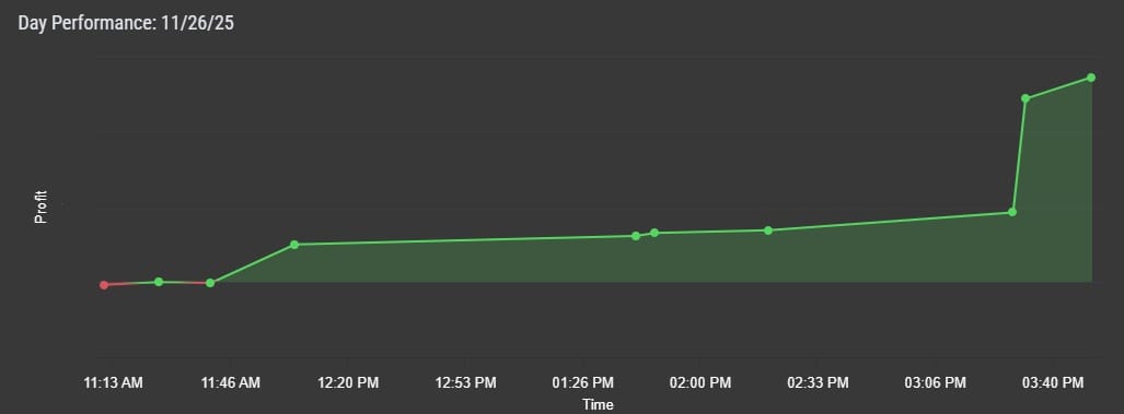 Met de handel op de Amerikaanse futures heb ik gisteren winst geboekt. Ik heb niet heel groot gehandeld, mede omdat de Amerikanen richting Thanksgiving gingen en ik mijn risico daarom beperkt wilde houden. Achteraf gezien had ik er misschien nog iets meer uit kunnen halen, maar dat is altijd terugkijkend. De winst die ik heb gepakt is gewoon prima.
