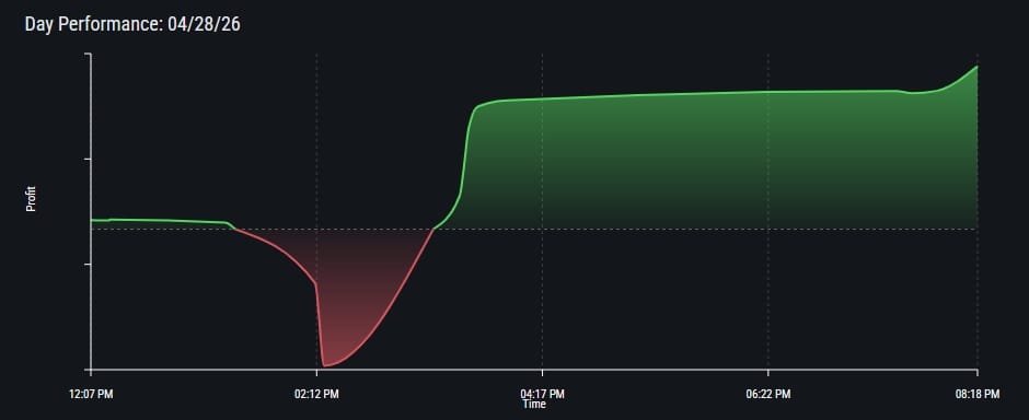 Tussentijds ontstond er wel een duidelijke terugval, waardoor de positie kortstondig in het verlies kwam. Dat verlies werd echter snel hersteld, waardoor de dag per saldo positief werd afgesloten.