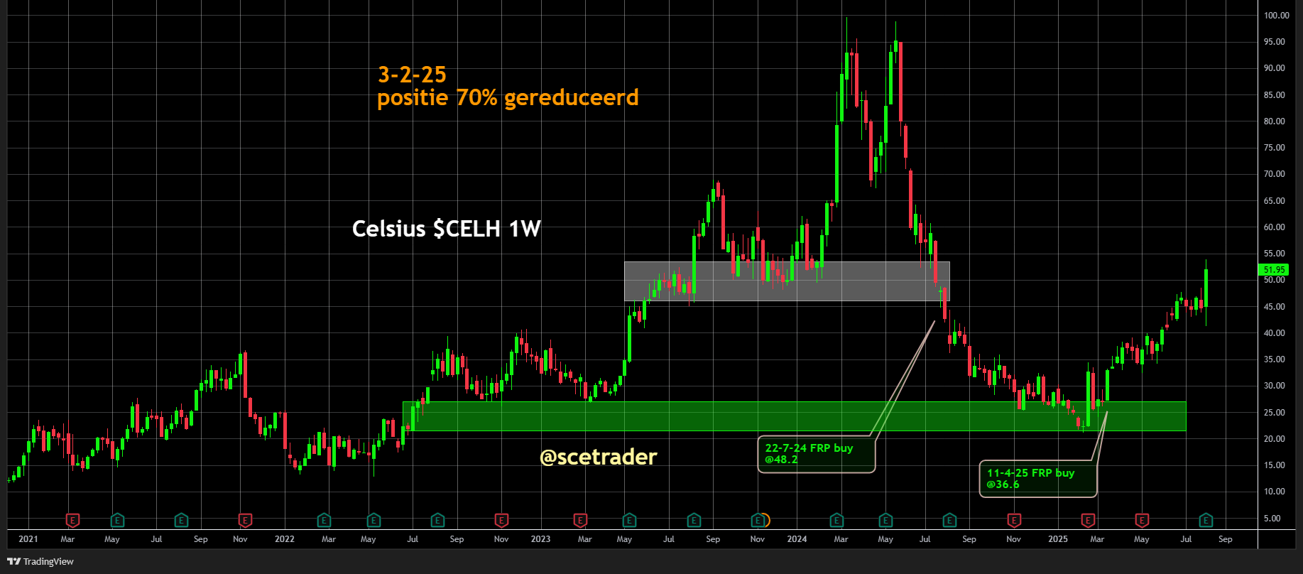Wij zitten op een stijging van het aandeel Celsius en hebben onlangs ook aandacht besteed aan de meest recente presentatie van de cijfers (zie de database). We kopen overigens niet bij en zijn tevreden met de huidige exposure.