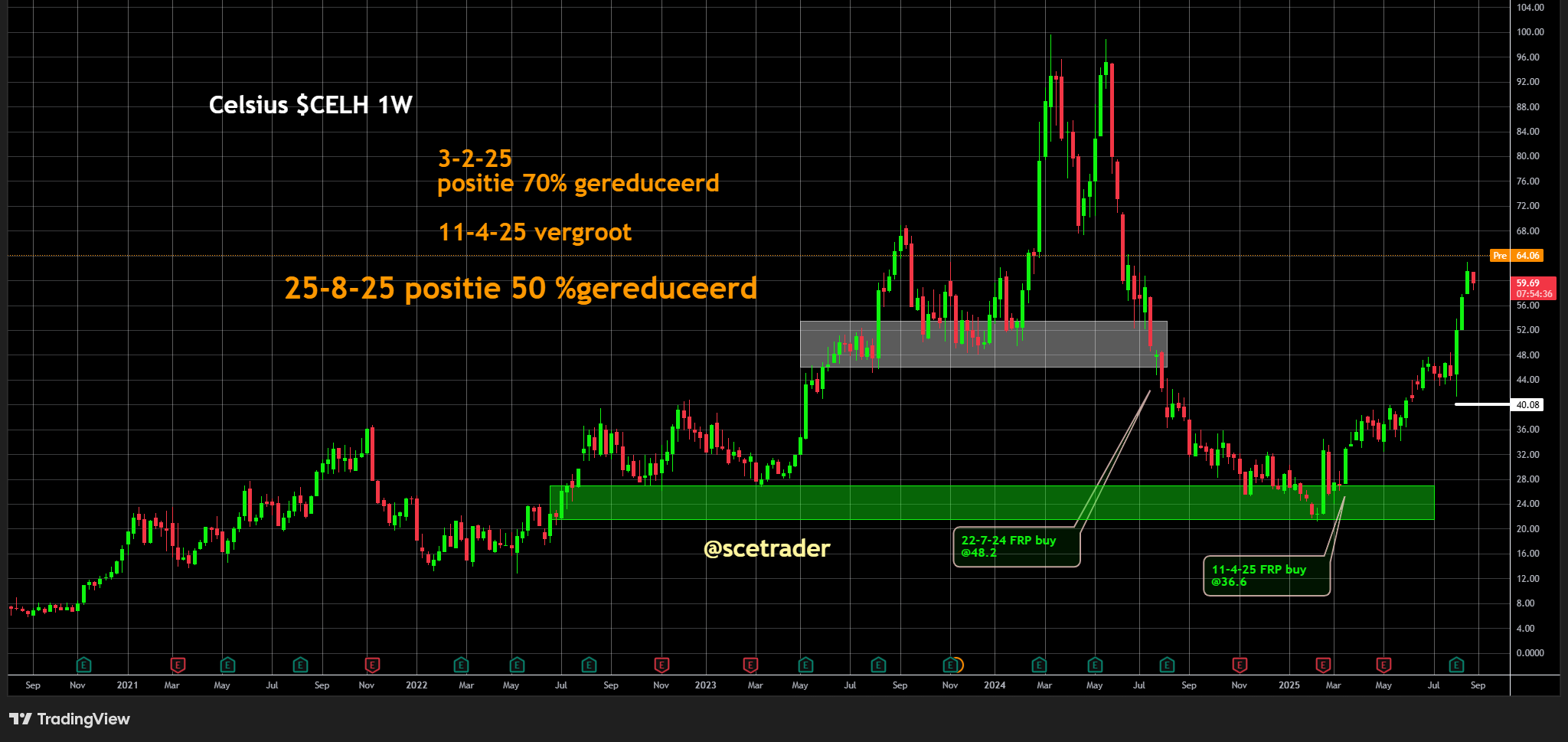 Wij hebben eerder de helft van onze winst genomen in Celsius en de andere helft laten liggen (zie ook de database).