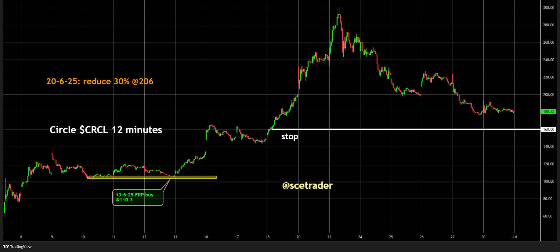 Wij blijven op een stijging van het aandeel Circle zitten. Eerder hebben we al op 30% van de positie winst genomen en daarmee een free ride gecreëerd, met een stop in de winst. Als deze stop wordt geraakt, is de kans groot dat we kort daarna weer snel opnieuw zullen instappen. We blijven dan ook bullish voor de lange termijn. Zie ook de database.