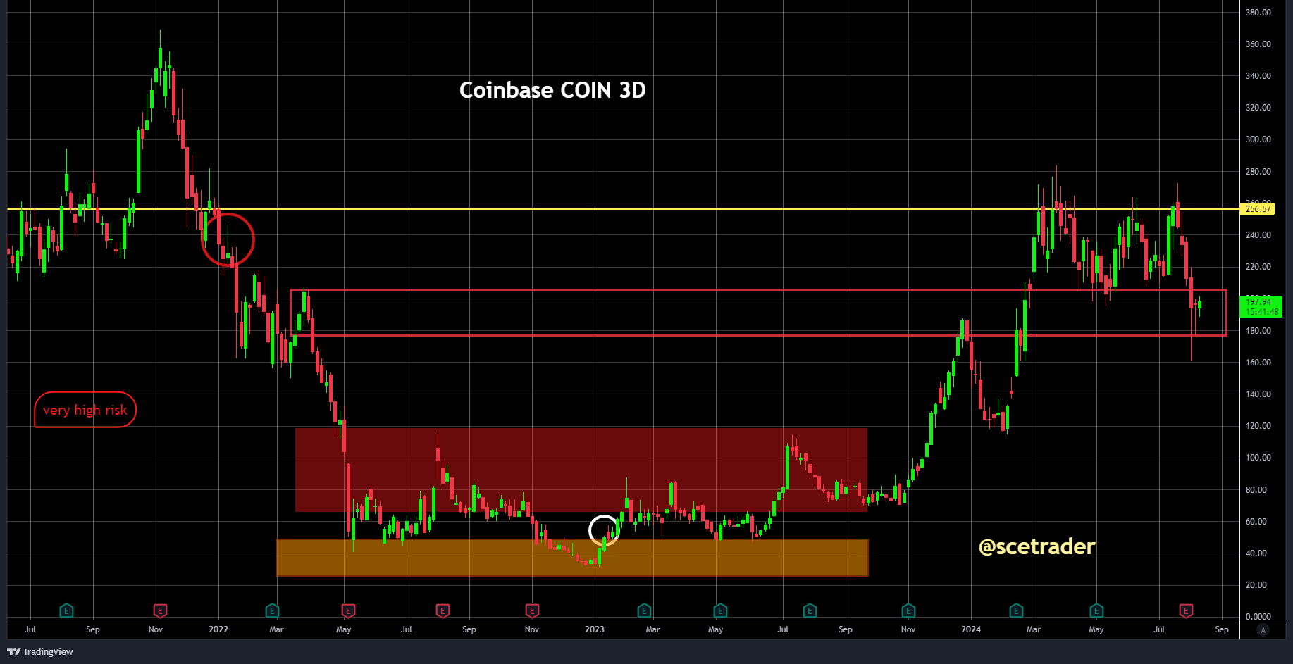 Het is een heel duur aandeel, maar zodra Bitcoin weer een rally gaat inzetten, is de kans groot dat ook de koers van Coinbase weer tijdelijk verder gaat stijgen. Wij zouden nu zelf wachten.
