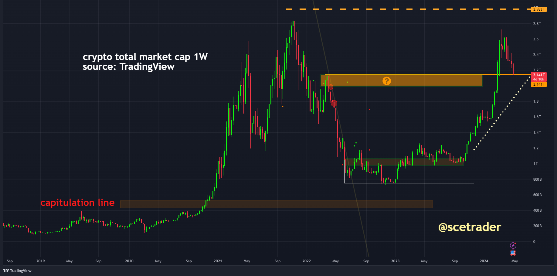 Het lijkt erop dat de markt verder zou kunnen dalen. We hebben recentelijk hier meer aandacht aan besteed, en we willen in deze mededeling benadrukken dat we, zoals reeds gemeld, tijdelijk bijna weer volledig weg zijn uit crypto.