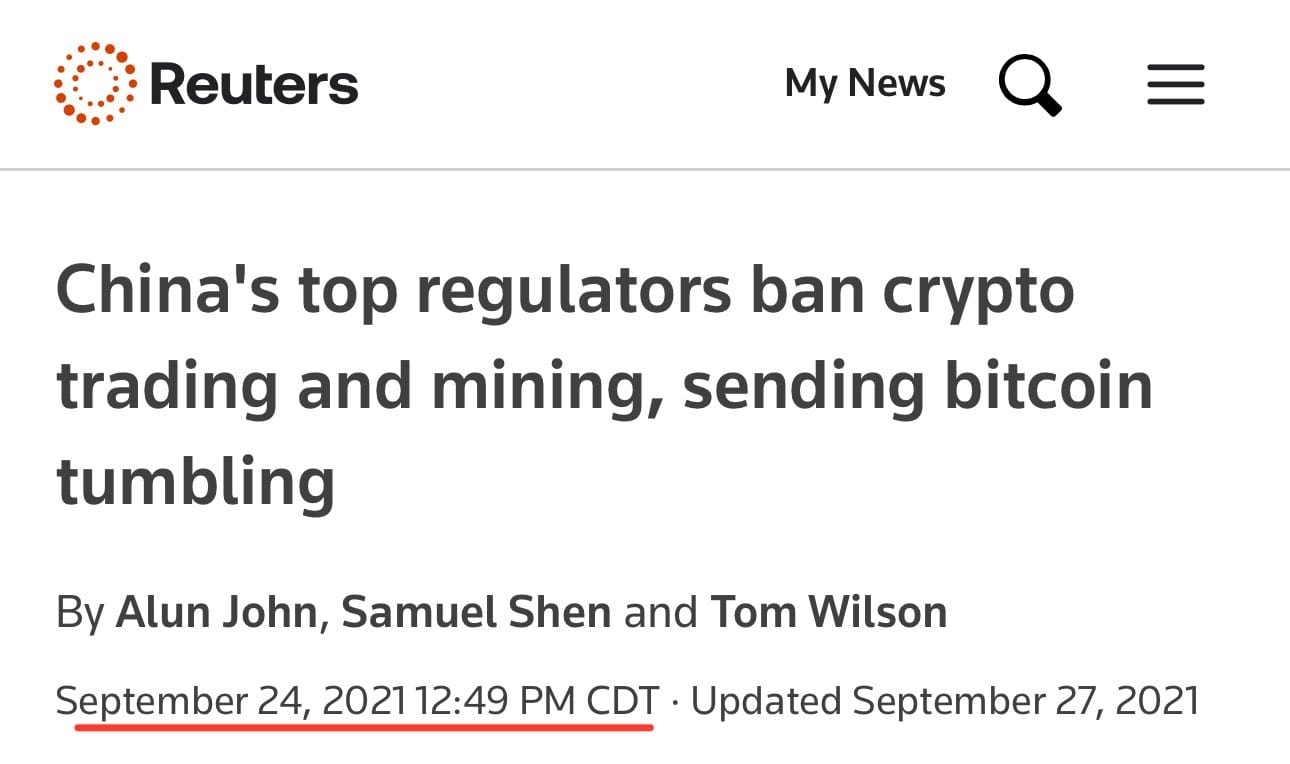 De claim stelt dat de Chinese overheid in augustus 2025 een nieuw totaalverbod op cryptotransacties, mining en aanverwante diensten zou hebben ingevoerd. Echter, er is geen sprake van nieuwe wetgeving of overheidsmaatregelen: China voerde dit verbod al in op 24 september 2021.