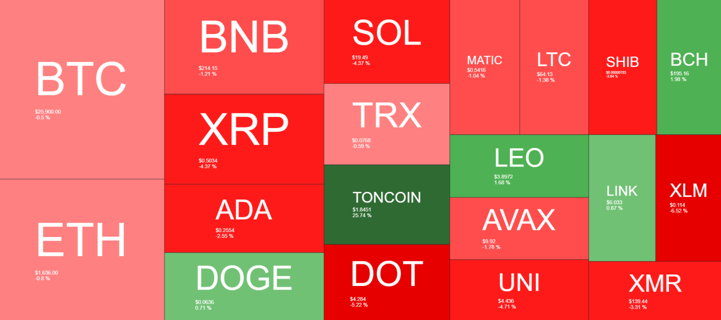 Crypto: heatmap - totale markt doet nog weinig - visie