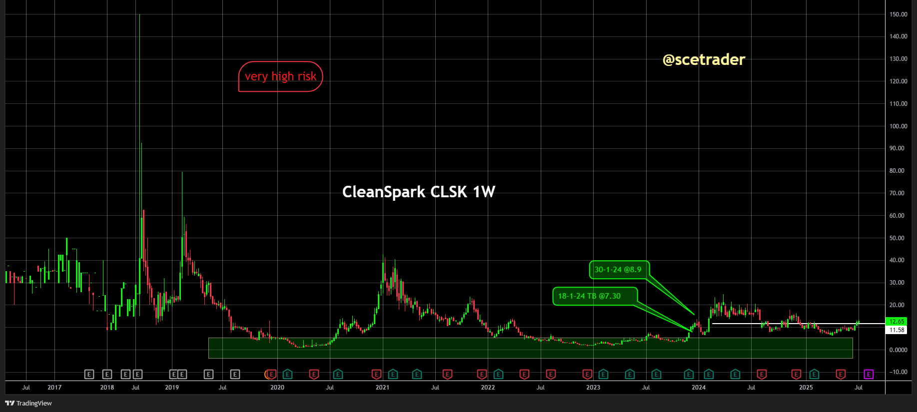 Cleanspark valt in dezelfde categorie als Marathon Digital. Zie ook de database over crypto miners. We stapten in op $7,30 en $8,90. De positie is klein en eerder verkleind.