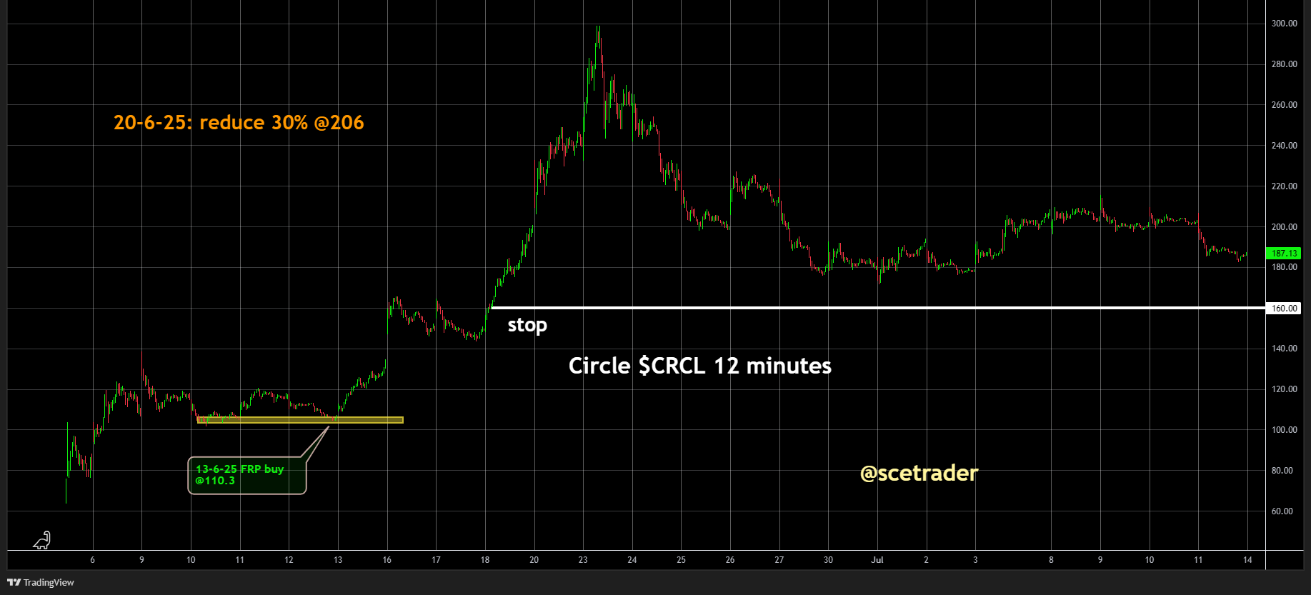 Circle, bekend van de stablecoin USDC, is volgens ons strategisch perfect gepositioneerd. We kochten het aandeel op 13 juni op $110,30. Op 20 juni verkleinden we de positie met 30% op $206 – een mooie winst en de rest staat nog open. Zie ook de database.