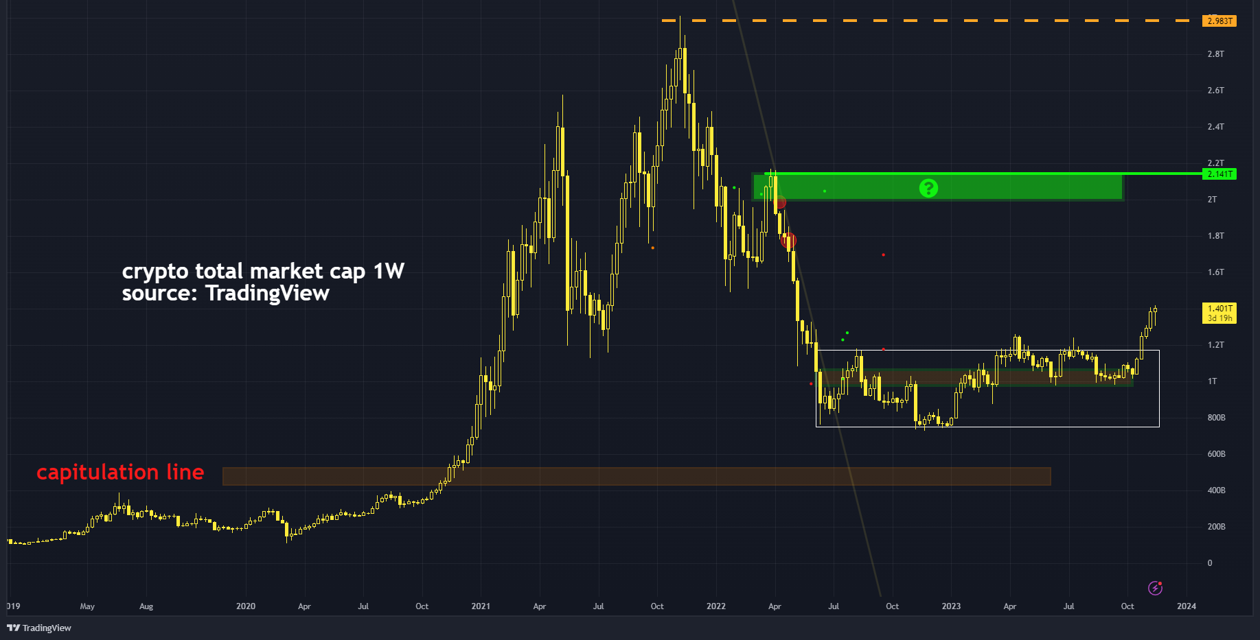 Dat gezegd hebbende, geldt voor nu echter dat er geld richting crypto stroomt en de koersen worden opgejaagd. Zolang het duurt.