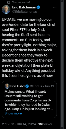 Met name Ethereum herstelde, wat toe te wijzen valt aan een tweet van Bloomberg analist Eric Balchunas nadat eerder Gary Gensler commentaar gaf inzake de tijdslijn van de spot ETF: