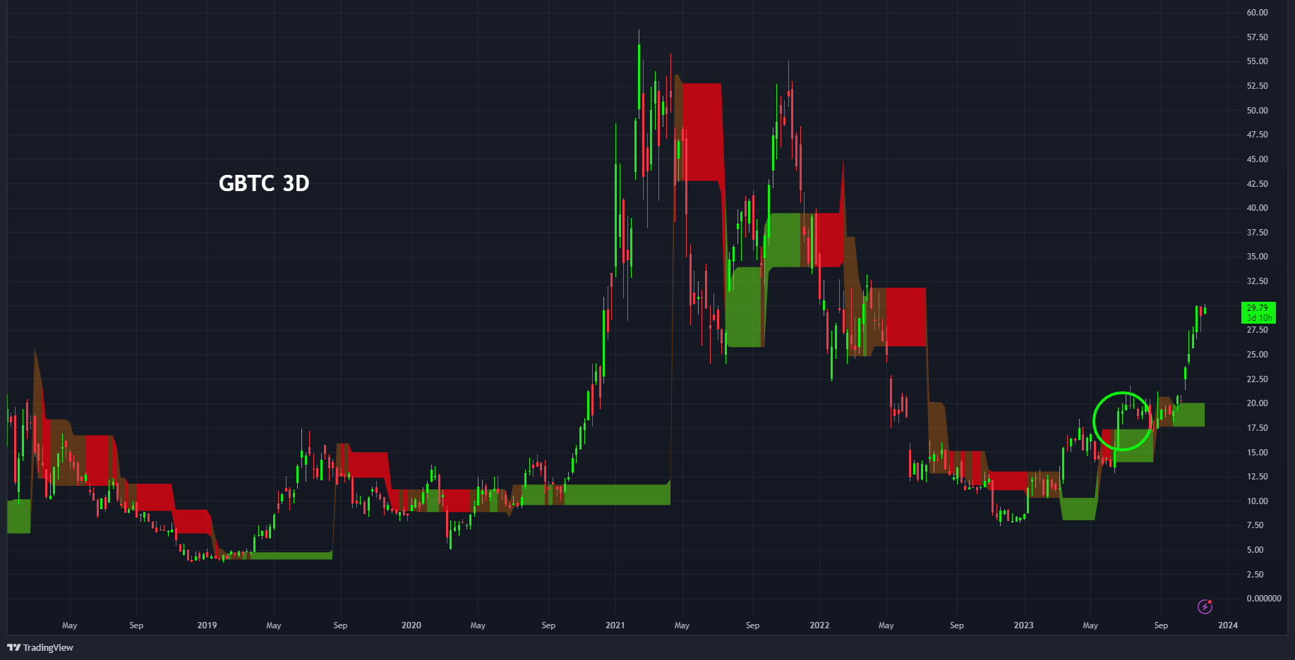 De koers van #GBTC blijft ook stijgen op de hoop van een omzetting naar een spot ETF.