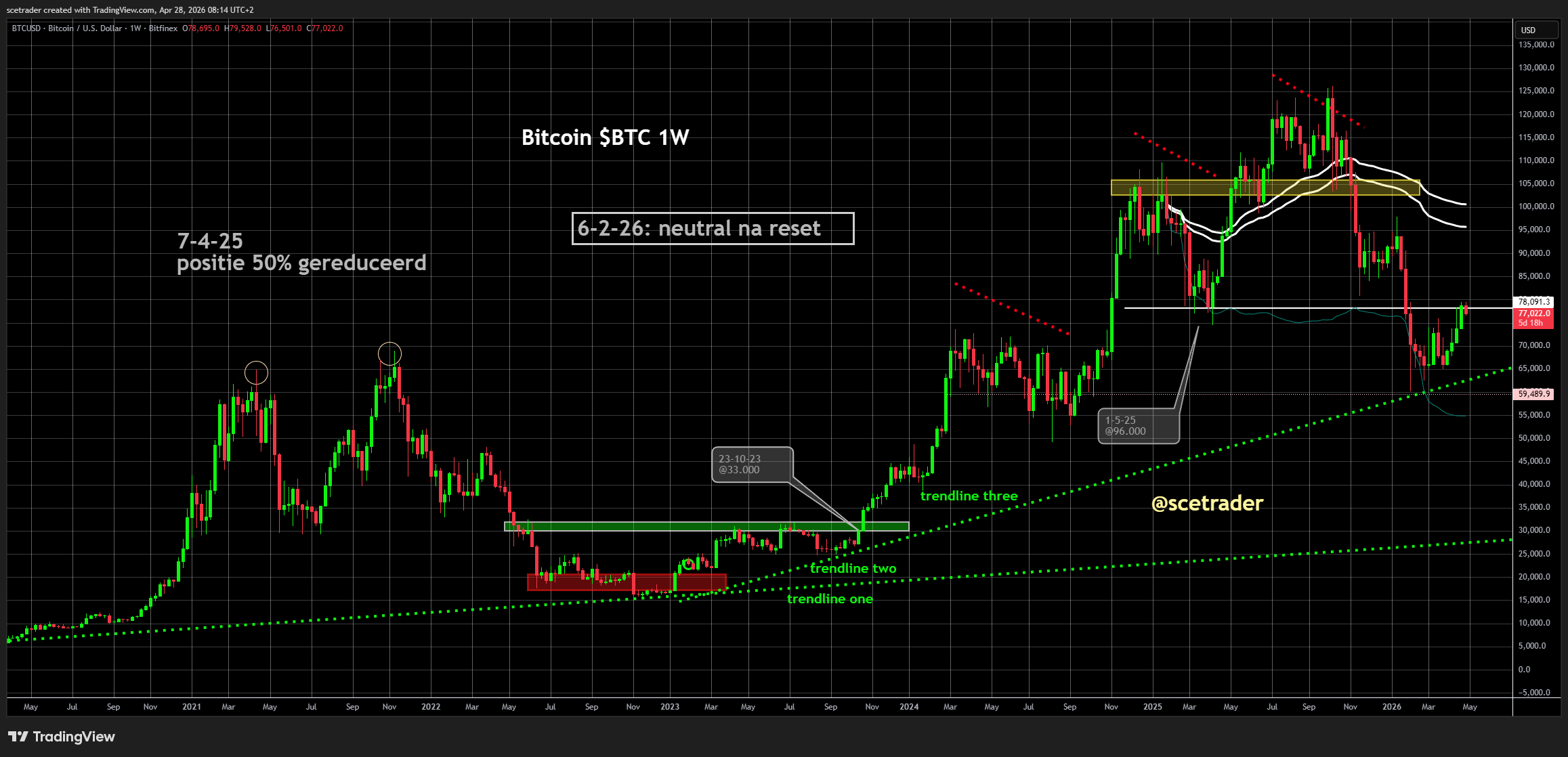 - De beweging richting $80.000 laat zien dat het momentum opnieuw opbouwt